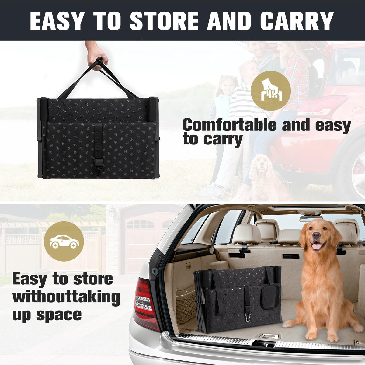 Extra Wide Dog Stairs For Car - Foldable Dog Ramps For Large Dogs With Non Slip Surface, Portable Dog Steps For Cars And Suv, Tr
