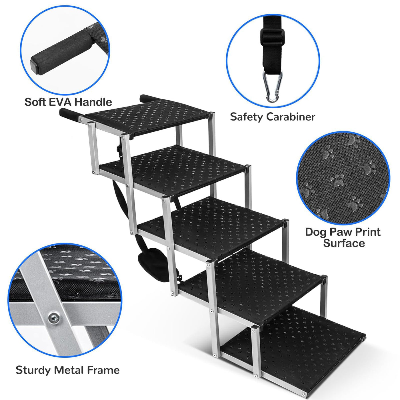 Extra Wide Dog Stairs For Large Dogs,Portable Foldingdog Ramps For Cars,Suv,Trucks,Pet Ramp With Non-Slip Surface,Dog Steps Supp