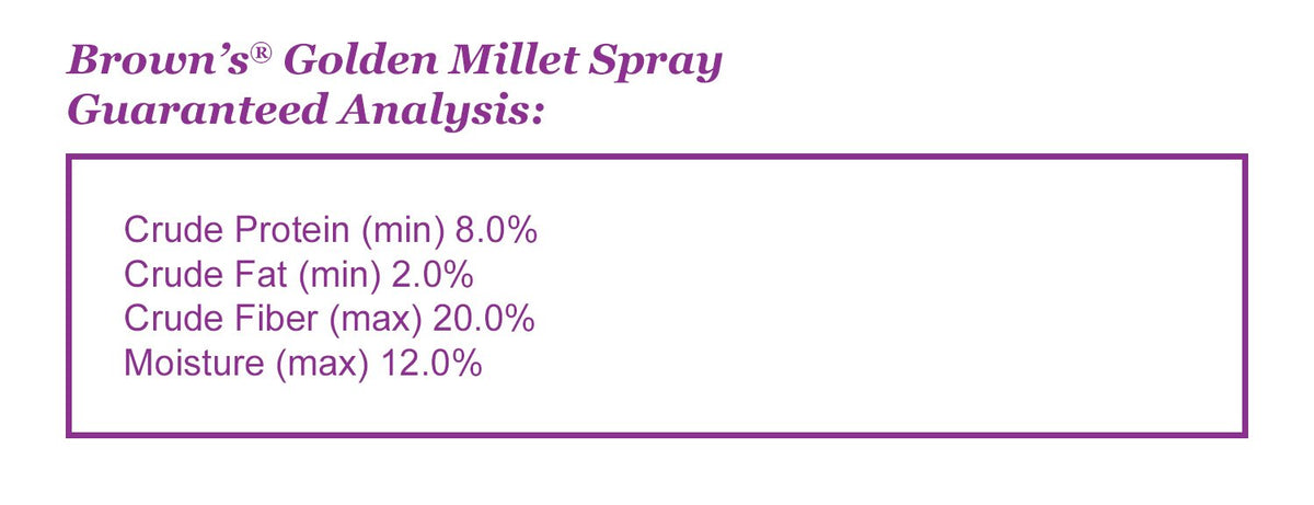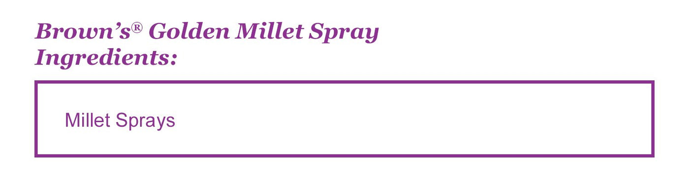 Browns Golden Millet Spray is a natural and delicious treat that is field-fresh and American-grown. All types of pet and wild birds relish our plump, sun-cured millet sprays!