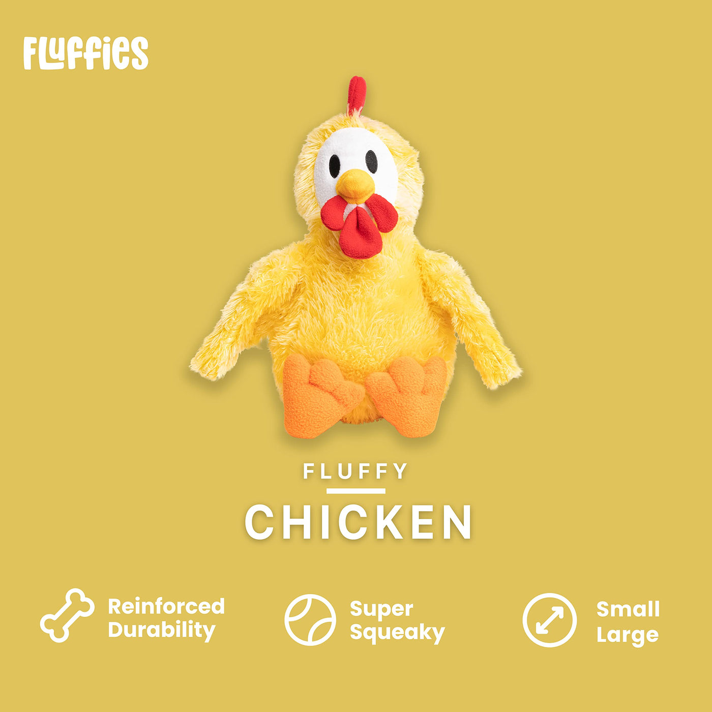 cute, fluffy, squeaky and were not just describing your dog Made with our new fabtough technology, these toys have reinforced nylon lining for the most playful pups Features a grunting squeaker Small - 11inch Height Featured Bullets: