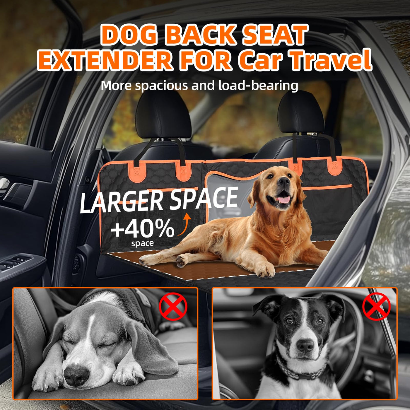 Fahkns Dog Car Seat Cover With Hard Bottom-Detachable,Back Seat Extender For Dogs 600D Heavy Duty Scratch Waterproof With Mesh W