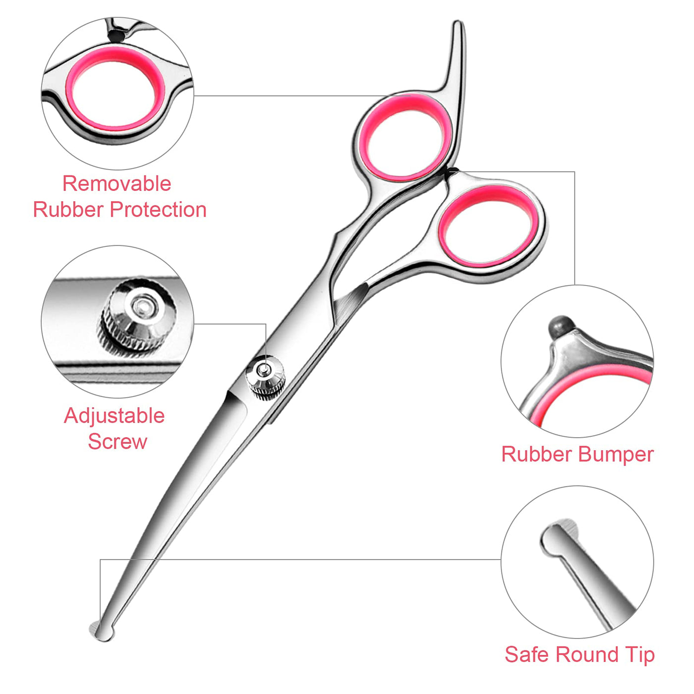 Pragmatic Pet Grooming Scissors Kit:Curved Scissorssharp Dog Scissors With Safety Round Tip, You Can Haircut Your Pet With Peace Of Mind.Thinning Scissors Made Of High-Quality Stainless Steel, With 26 Clear Tip Tooth, It Can Cut Thick And Long Hair Quickly And Accurately.Straight Scissorsthe Straight Shears Are Made From Razor-Sharp Stainless Steel That Ensures Precise And Speedy Trimming, Good For Cutting Length Off Your Pets Fur On Legs And Back.Grooming Combwide Teeth And Close Teeth, Suitable For Small And Medium Pets, Dogs.Order Come With:1 * 6.5-Inch Curved Scissors1 * 6.5-Inch Thinning Scissors1 * 6.5-Inch Straight Scissors1 * Grooming Comb1 * Cleaning Cloth