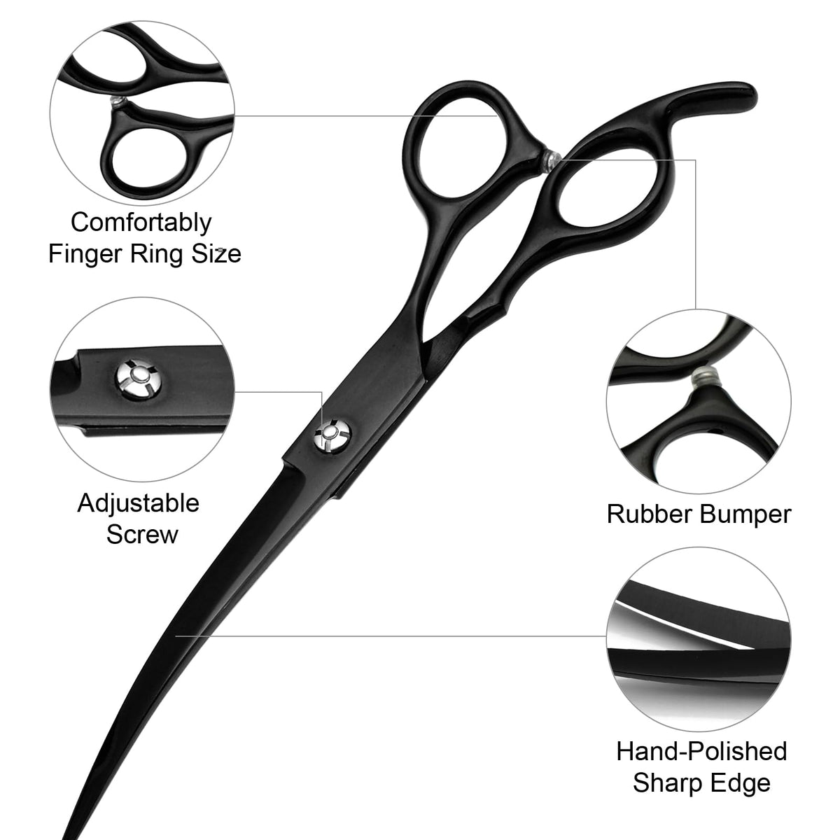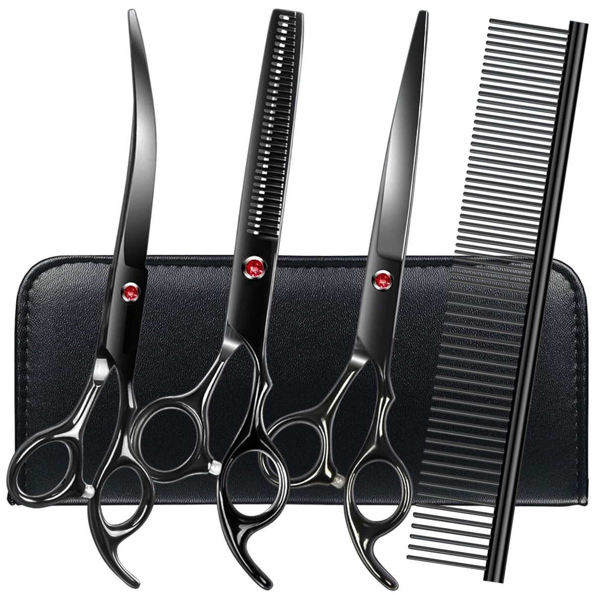 Pragmatic Dog Grooming Scissors Kit:Curved Scissorssharp Dog Scissors , You Can Haircut Your Pet With Peace Of Mind.Thinning Scissors Made Of High-Quality Stainless Steel, With 34 Clear Tip Tooth, It Can Cut Thick And Long Hair Quickly And Accurately.Straight Scissorsthe Straight Shears Are Made From Razor-Sharp Stainless Steel That Ensures Precise And Speedy Trimming, Good For Cutting Length Off Your Pets Fur On Legs And Back.Grooming Combwide Teeth And Close Teeth, Suitable For Small And Medium Pets, Dogs.Order Come With:1 * 7.7-Inch Curved Scissors1 * 7.3-Inch Thinning Scissors1 * 7.7-Inch Straight Scissors1 * Grooming Comb1 * Cleaning Cloth>1 * Black Leather Case