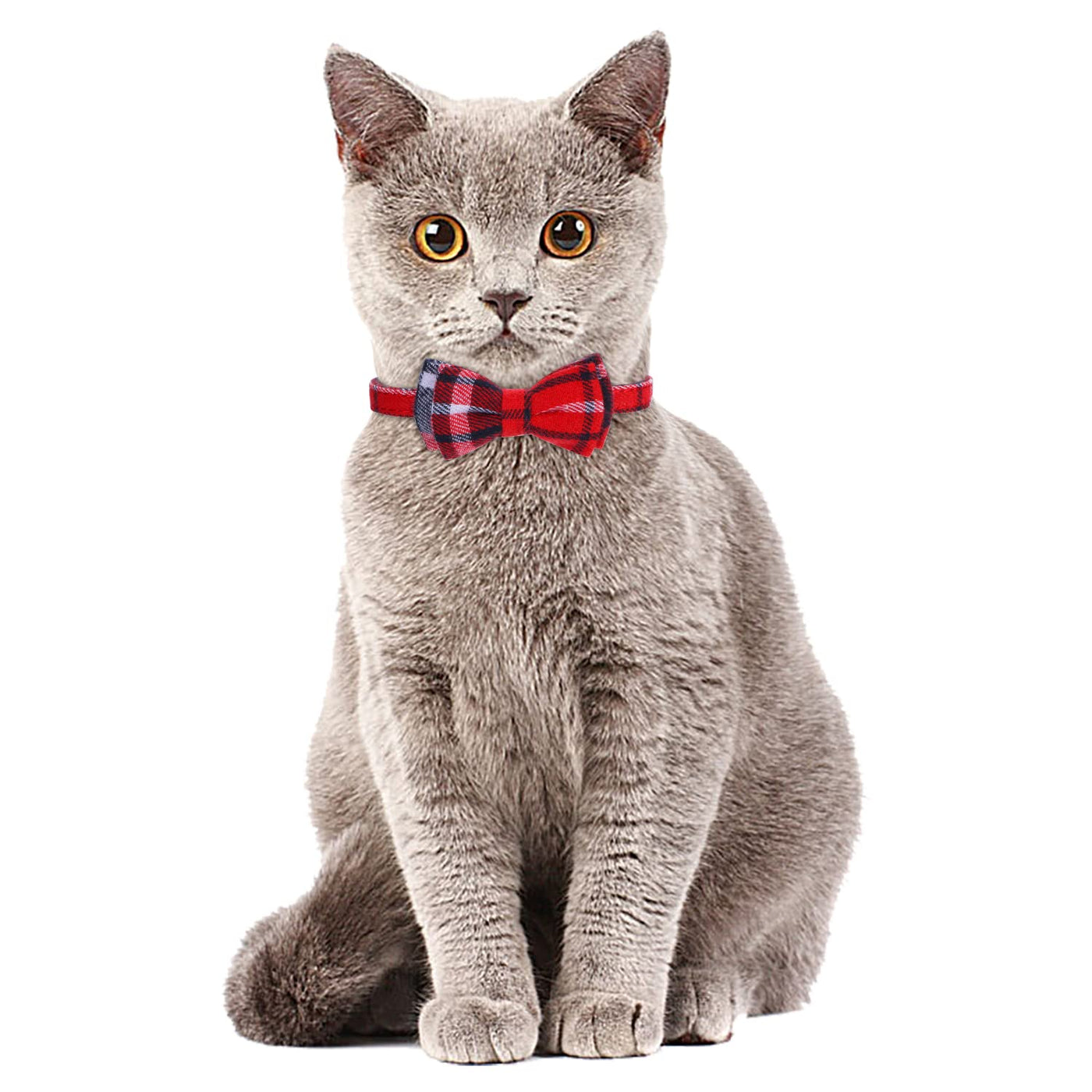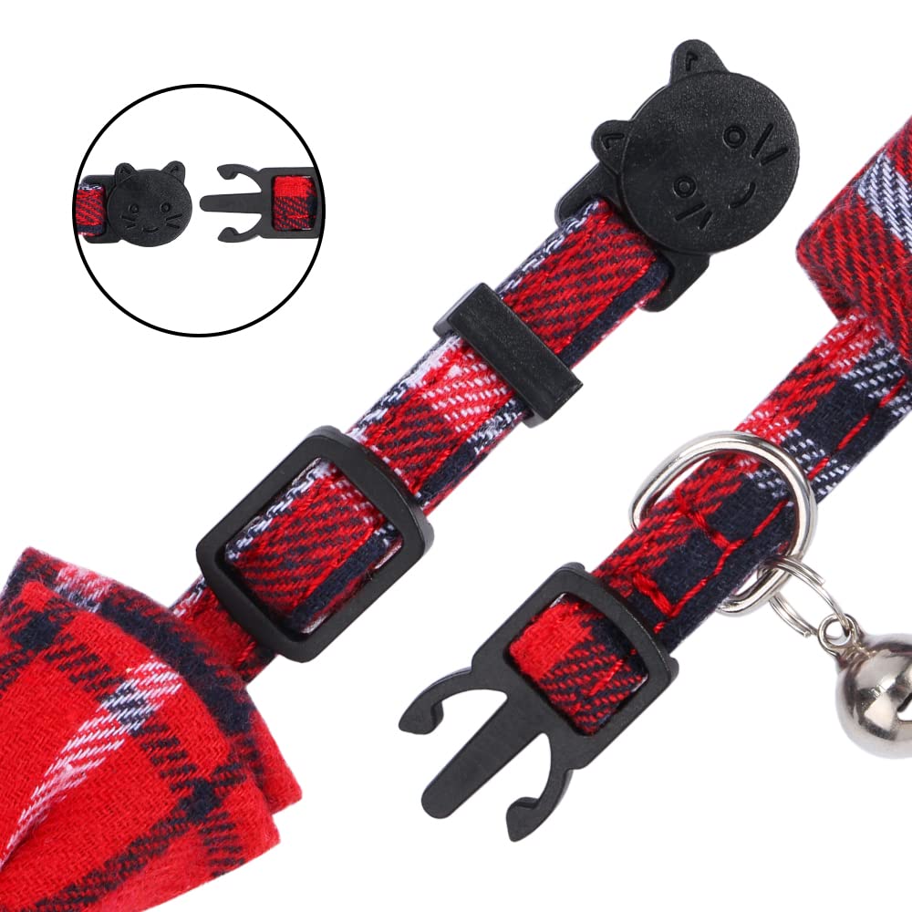 Faleela 2 Pack/Set Cat Collar With Cute Bow Tie And Bell,Breakaway Plaid Shirt Collar For Kitty Adjustable Safety