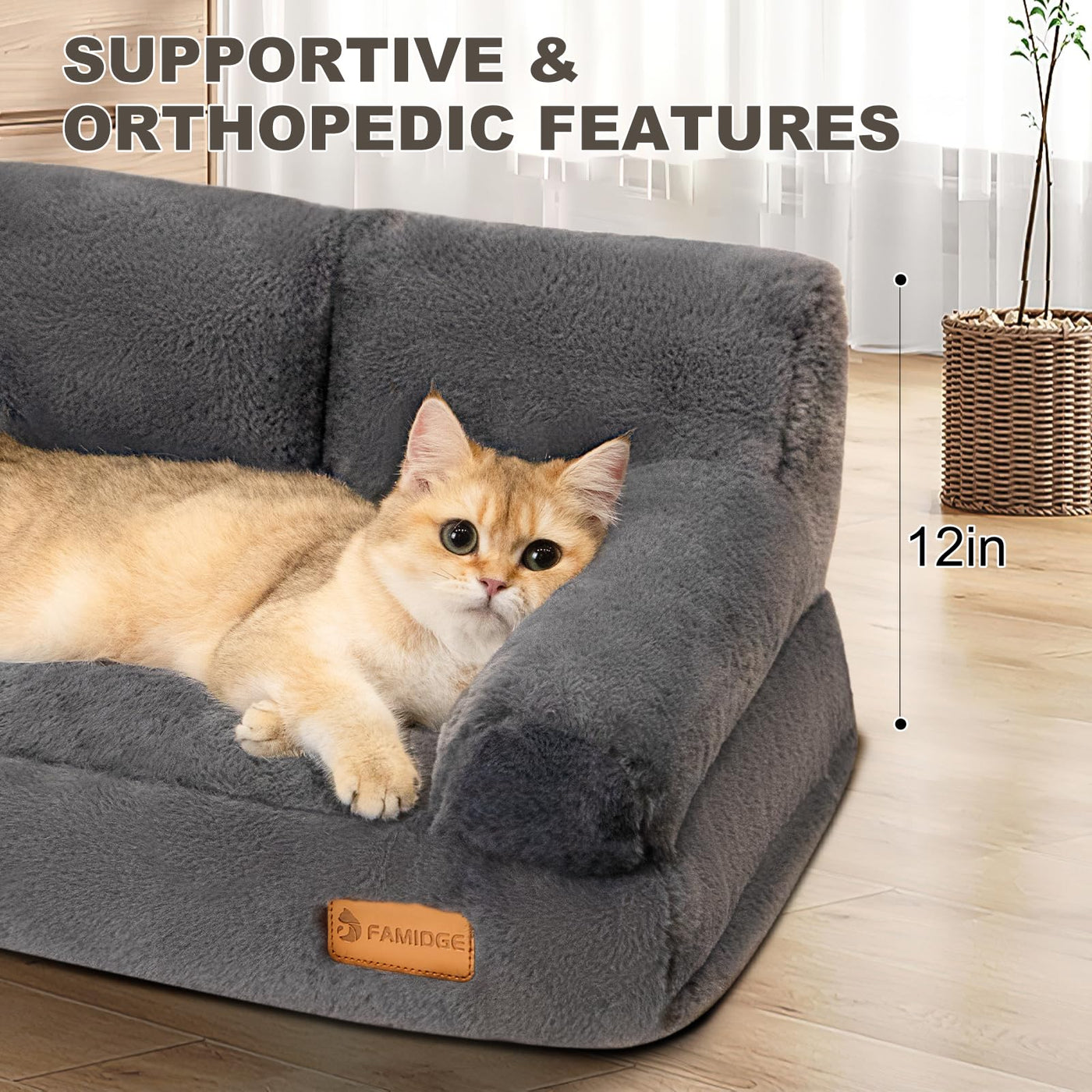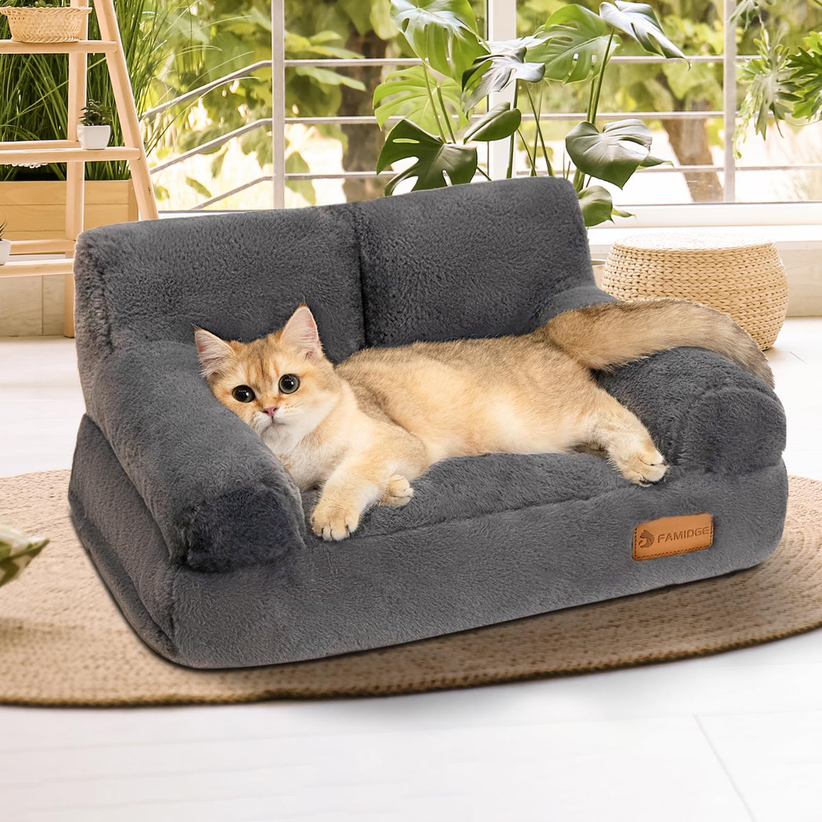 Famidge Cat Couch, Fluffy Cat Bed For Indoor Cats, Calming Pet Sofa Bed Puppy Sleeping Bed, Cute Dog Couch For Medium Cats & Dog