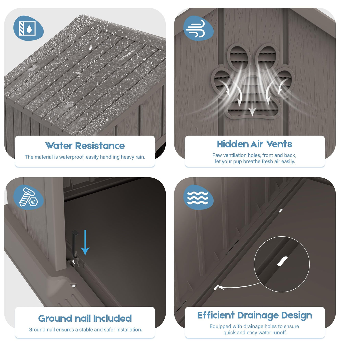 Fancyango Large Dog House Outdoor Indoor for Medium Large Dogs, Durable Plastic Waterproof Doghouse with Air Vents and Elevated