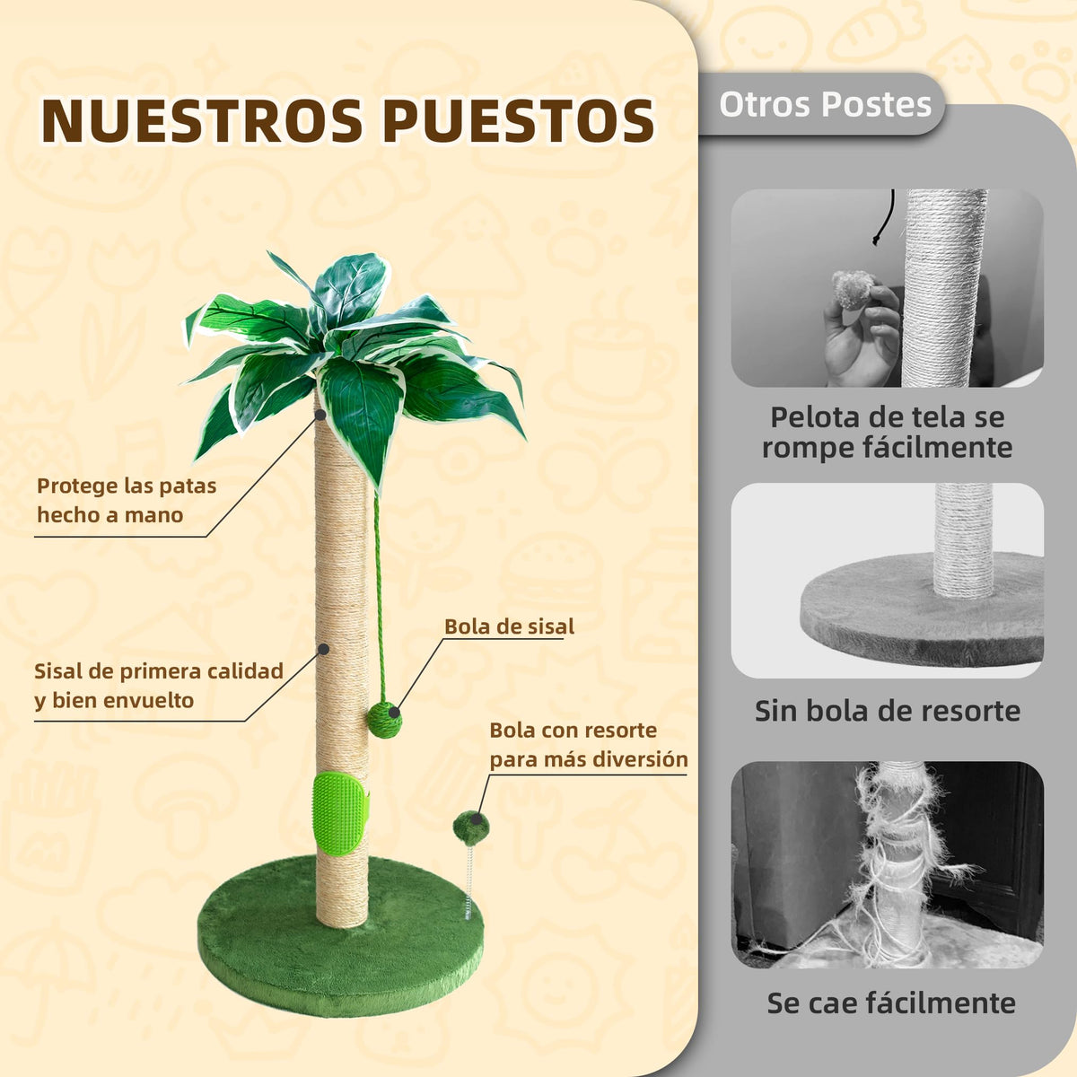 Fantasreen Cat Scratching Post 35'' Cat Scratcher Tall Scratching Posts For Indoor Cats With Cat Toy And Interactive Ball Self G