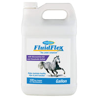 When you ride your horse regularly, whether for pleasure, trail riding or competition, his joints are put to the test. Keeping a horse sound takes proactive management, including balanced nutrition, possible joint supplementation and routine hoof care. Movement is vital to a horses longevity; without healthy joints, a horse can become stiff, sore and begin to breakdown. Help keep horses in motion with the exclusive formula of FluidFlex Liquid Joint Supplement. Known as The Joint Solution for a reason; it contains the most preferred ingredients for healthy joint and hip function. Combines a balance of glucosamine HCl, which supports the production of cartilage and helps manage inflammation due to exercise and overexertion; chondroitin sulfate, which supports the production of proteoglycans; and potent antioxidants to help keep horses sound and discourage soreness. This daily joint supplement is easy-to-give; simply pour over grain ration or dose with an oral syringe. Dramatic results are guaranteed!