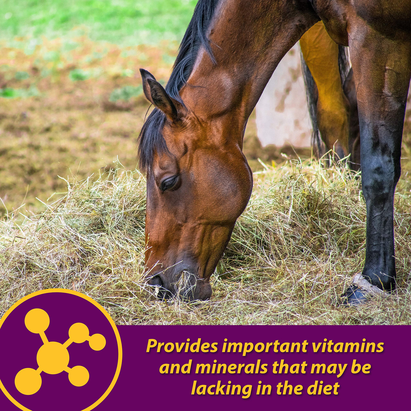 Vitamins and minerals make up a small part of the horses diet but are essential to providing a balanced nutritional foundation for overall health. Although most of a horses dietary needs can be met by feeding a good quality forage, there are a number of situations in which a horse can benefit from a vitamin/mineral supplement such as young, growing horses, broodmares, debilitated horses, senior horses, and performance horses. Red blood cells deliver oxygen to cells and remove carbon dioxide. This oxygen supply is critical for the performance horse during aerobic exercise and recovery. Red Cell Vitamin-Iron-Mineral Supplement provides important vitamins and minerals that may be lacking in the diet. Contains 300 mg. of iron per ounce to help maintain normal blood cell health, energy, and performance demands. Plus B-complex vitamins support metabolism and a healthy immune system. This palatable, yucca-flavored, liquid feed supplement is ideal for horses of all ages, disciplines, and workloads. Make sure your horse is getting the nutrition he needs to look, feel and perform his best.
