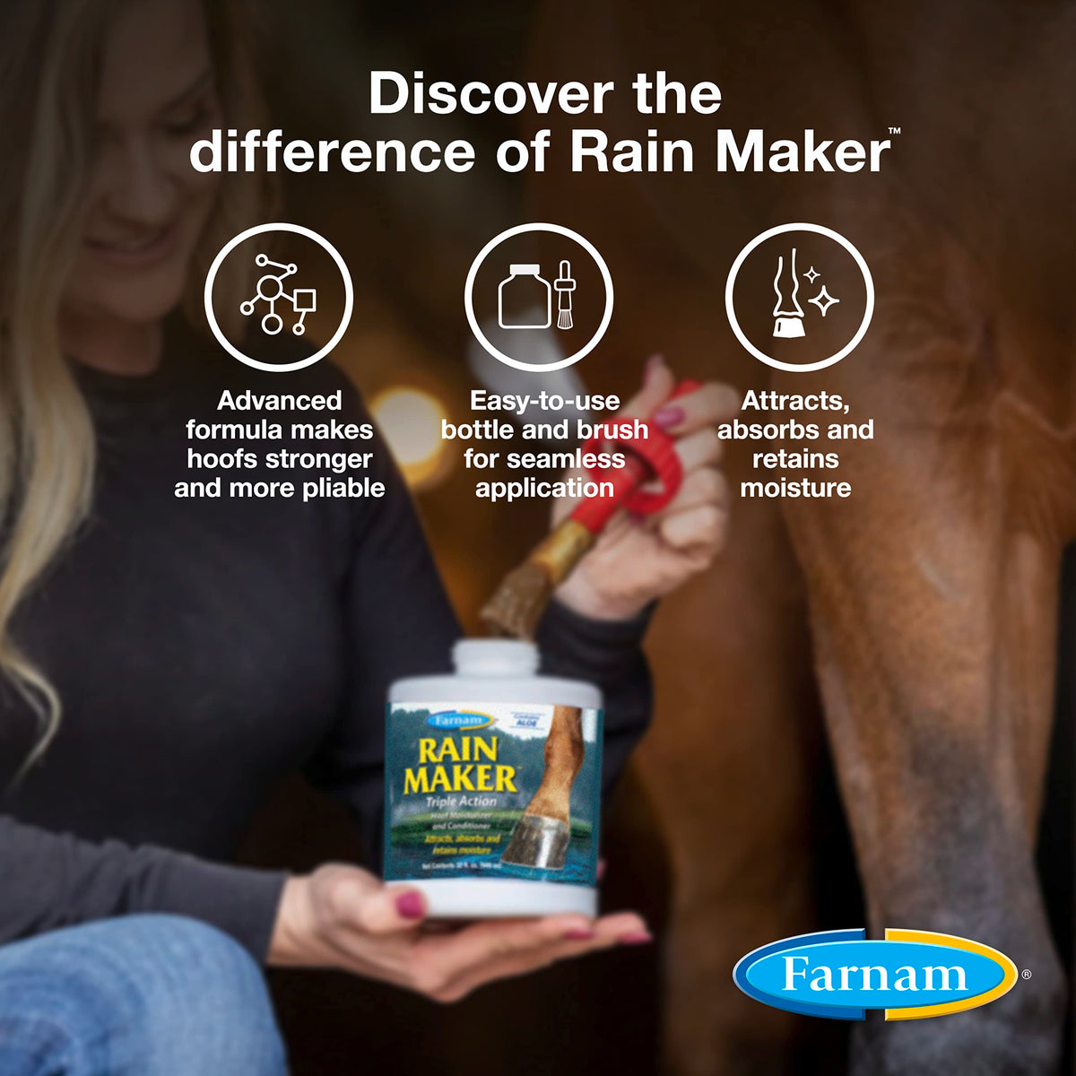 Farnam Rain Maker Triple Action Hoof Oil for Horses Moisturizer and Conditioner, Attracts, Absorbs and Retains Moisture, Contain