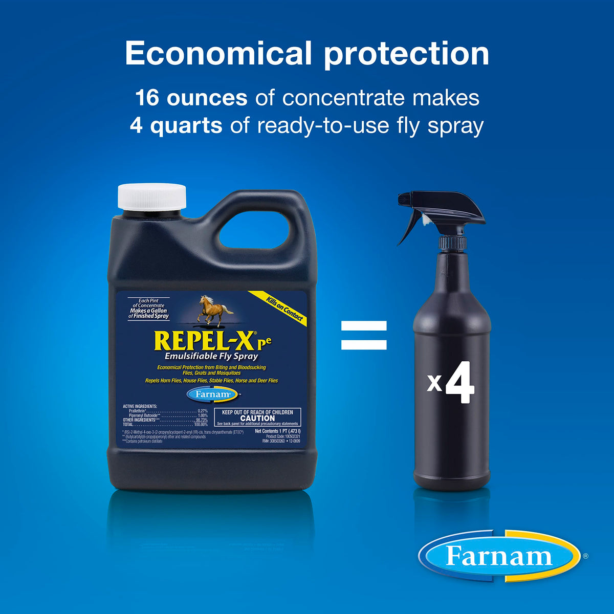 Farnam Repel-X Concentrated Fly Spray for Horses, 16 Fl Oz - Just Add Water, White, Effective Insect Repellent