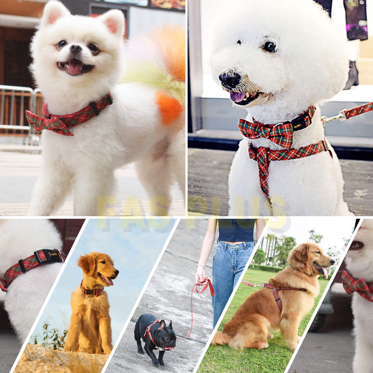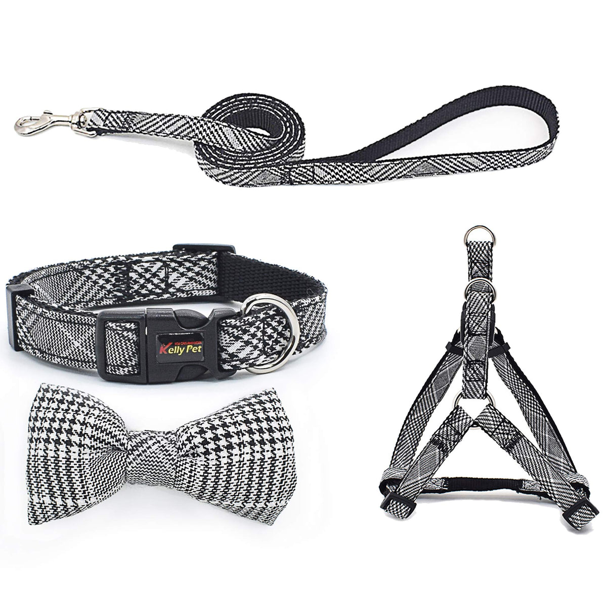Fas Plus No Pull Dog Harness And Leash Set With Bow Tie Collar,Adjustable Vest Harness Back Clip Heavy Duty 4Ft Leash For Small, Medium, Large And Extra Large Dogs.(Grey/White-Xl)