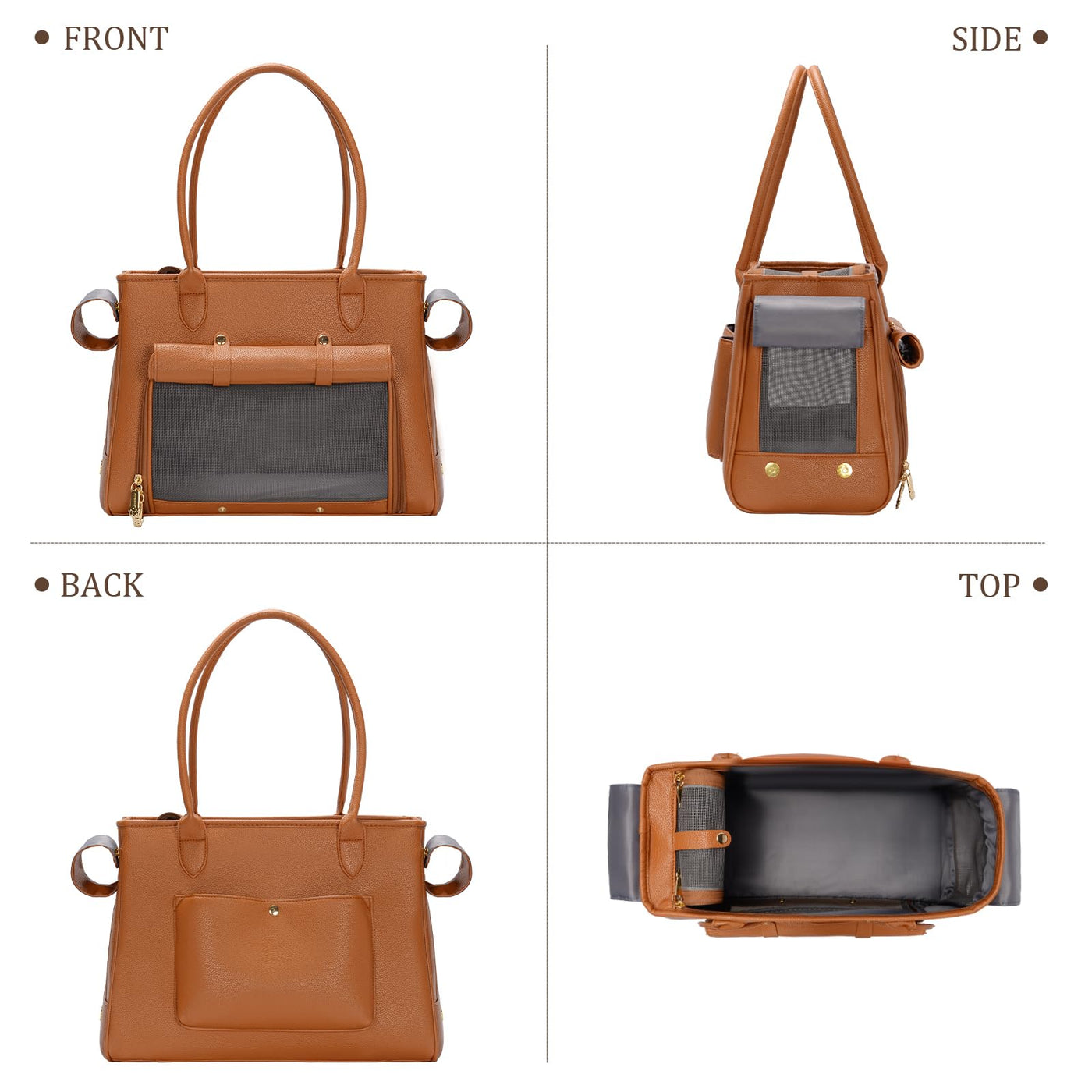Fashion Pet Carrier Purse For Small Cat And Dog, Luxury Pu Soft-Sided Tote Bag With Large Pockets For Dogs And Puppies (Brown, 1