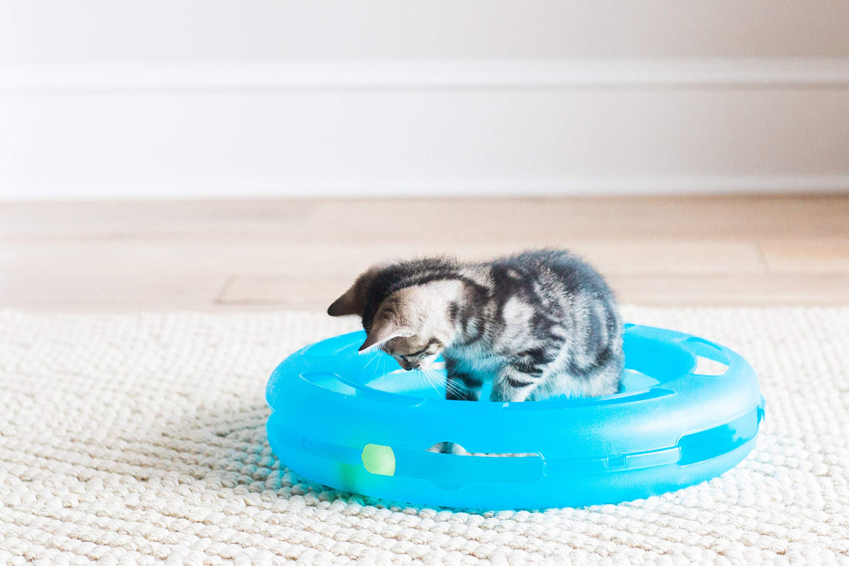 The Petmate Crazy Circle Cat Toy is a tubular plastic track that holds a ball toy for kitty to poke at and chase through paw-sized openings. Hours of fun for cats to play with - and for owners to watch!Drive your cat crazy with innovative spinning ball actionStimulates cats' natural need to chase and playHours of fun for cats to play and owners to watch