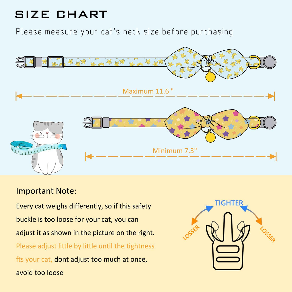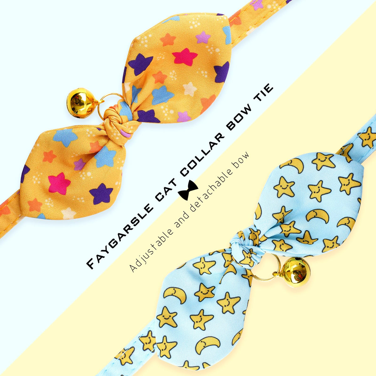 Faygarsle 2 Pack Breakaway Cute Cat Collars With Bell,Blue With Yellow Stars, Orange With Multicolor Stars