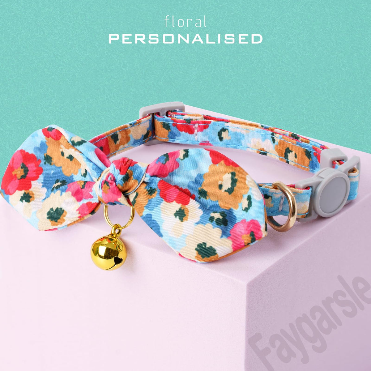 Faygarsle 2 Pack Breakaway Cute Cat Collars With Bow Ties Floral Pattern For Female And Girl Cats