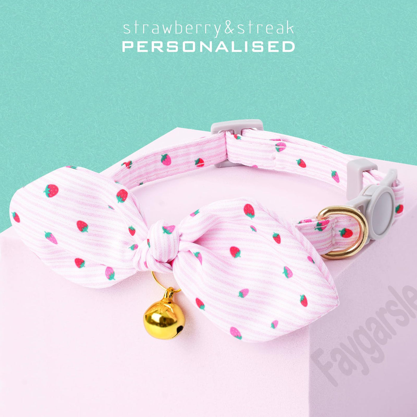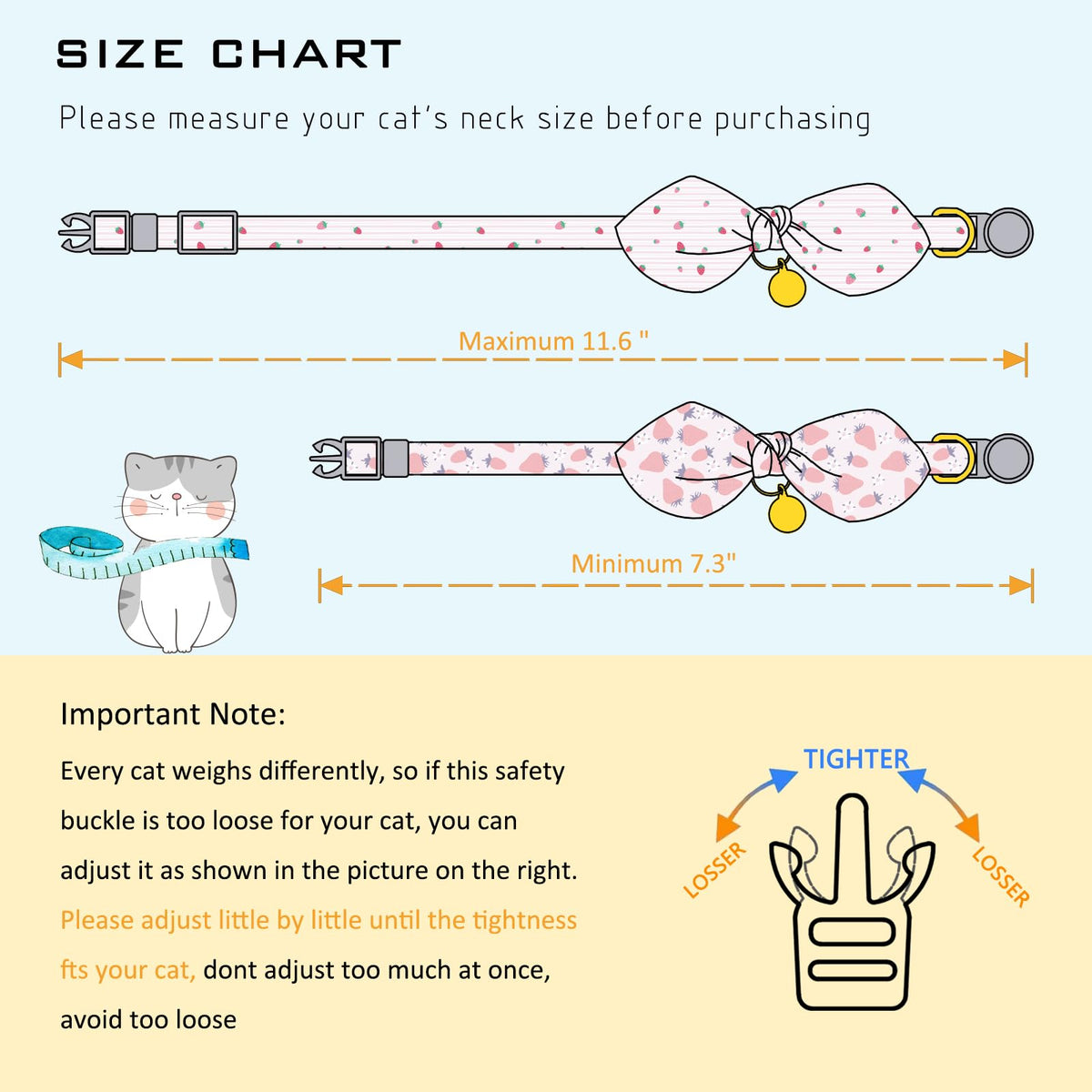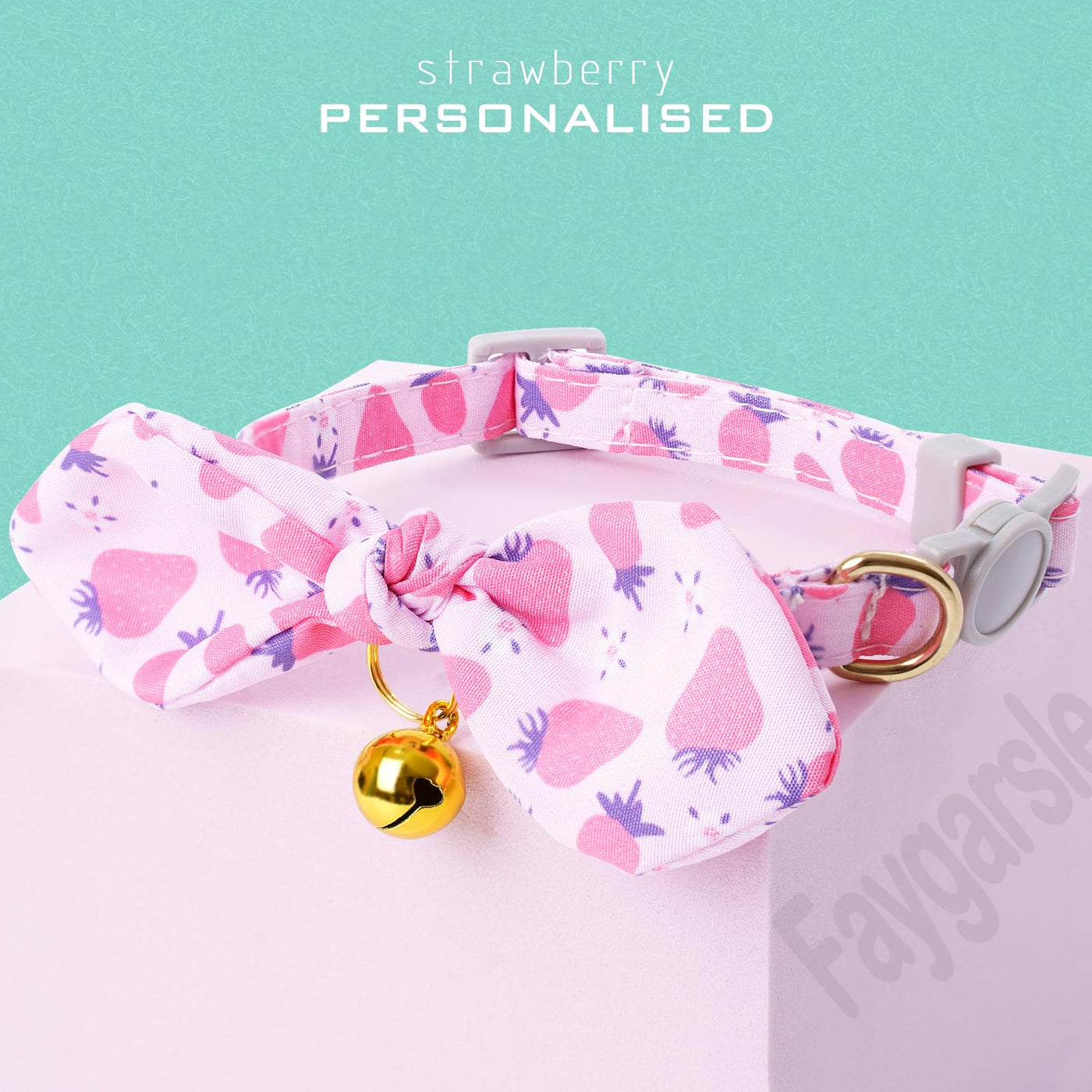 Faygarsle 2 Pack Breakaway Cute Cat Collars With Bow Ties Strawberry Pattern For Female And Male Cats Pink Cat Collar
