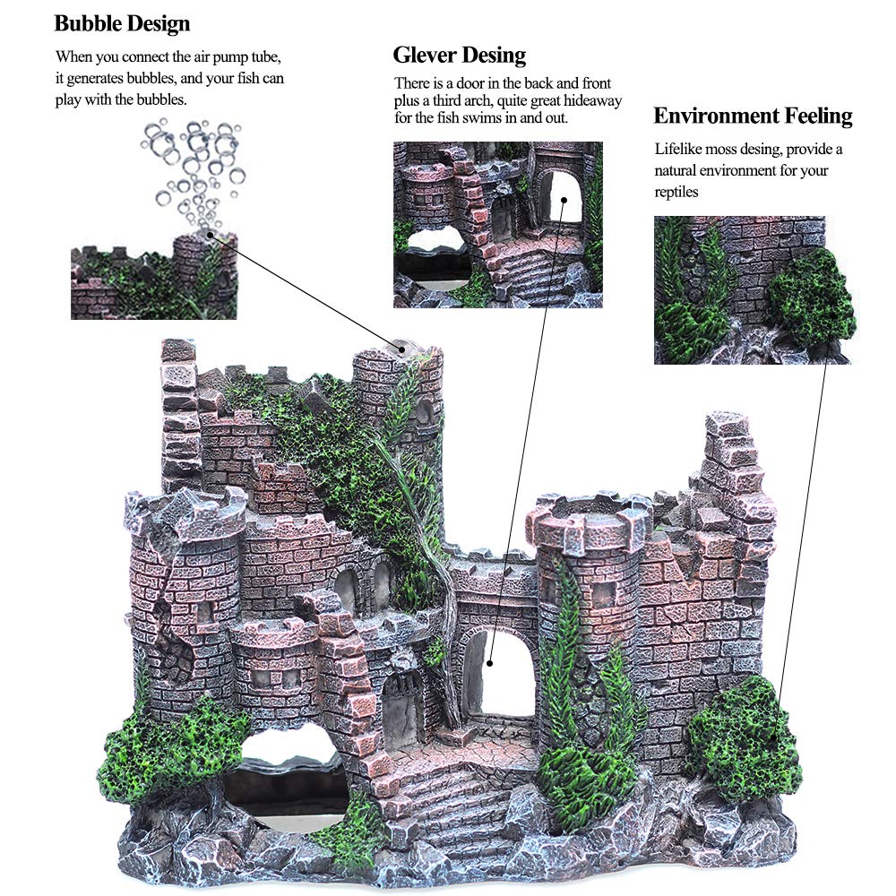 fazhongfa Aquarium Castle Air Bubbler Fish Tank Decorations for Betta Fish Ornament Small and Medium Fish Accessories Decor Bett