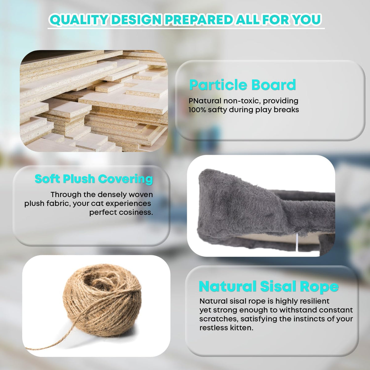 Our Towering Haven Of A Cat Tree, With Its Finely Detailed Construction, Offers Your Cherished Companion The Ideal Balance Of Activity, Comfort, And Repose. This Multi-Level Masterpiece, Standing Tall And Robust, Is Made To Fulfill All Of Your Cat'S Innate Impulses. Our Cat Tree Offers A Variety Of Inviting Features To Keep Your Pet Happy And Occupied For Hours On End, From Comfortable Hideaways For Seclusion And Relaxation To Plush Perches For Relaxing And Surveying Their Territory. In Addition To Providing A Safe Haven For Scratching, Its Scratching Poles Are Covered In Sturdy Sisal Rope, Protecting Your Furniture From Needless Abrasion. Because Of Its Modular Form, Which Makes Installation And Modification Simple, It Blends In Perfectly With Any Living Area While Bringing A Touch Of Charm And Elegance. Every Cat Lover'S Dream Home Must Have A Cat Tree Because It Offers The Ideal Haven For Your Cat, Whether They Are Playing, Lounging, Or Just Curled Up For A Good Night'S Sleep.Cat Tree;Cat Tower;Cat Scratching Post;Cat Tower For Indoor Cats;Cat Tree For Indoor Cats