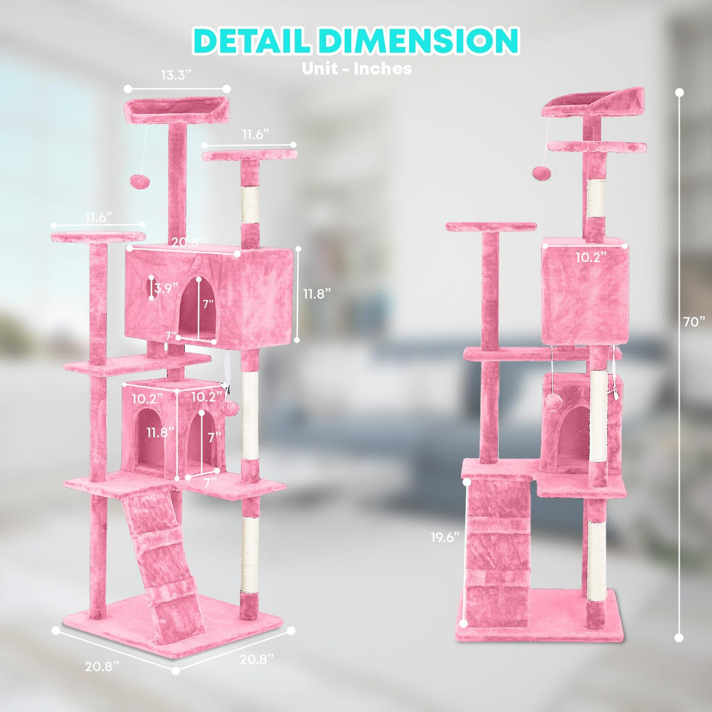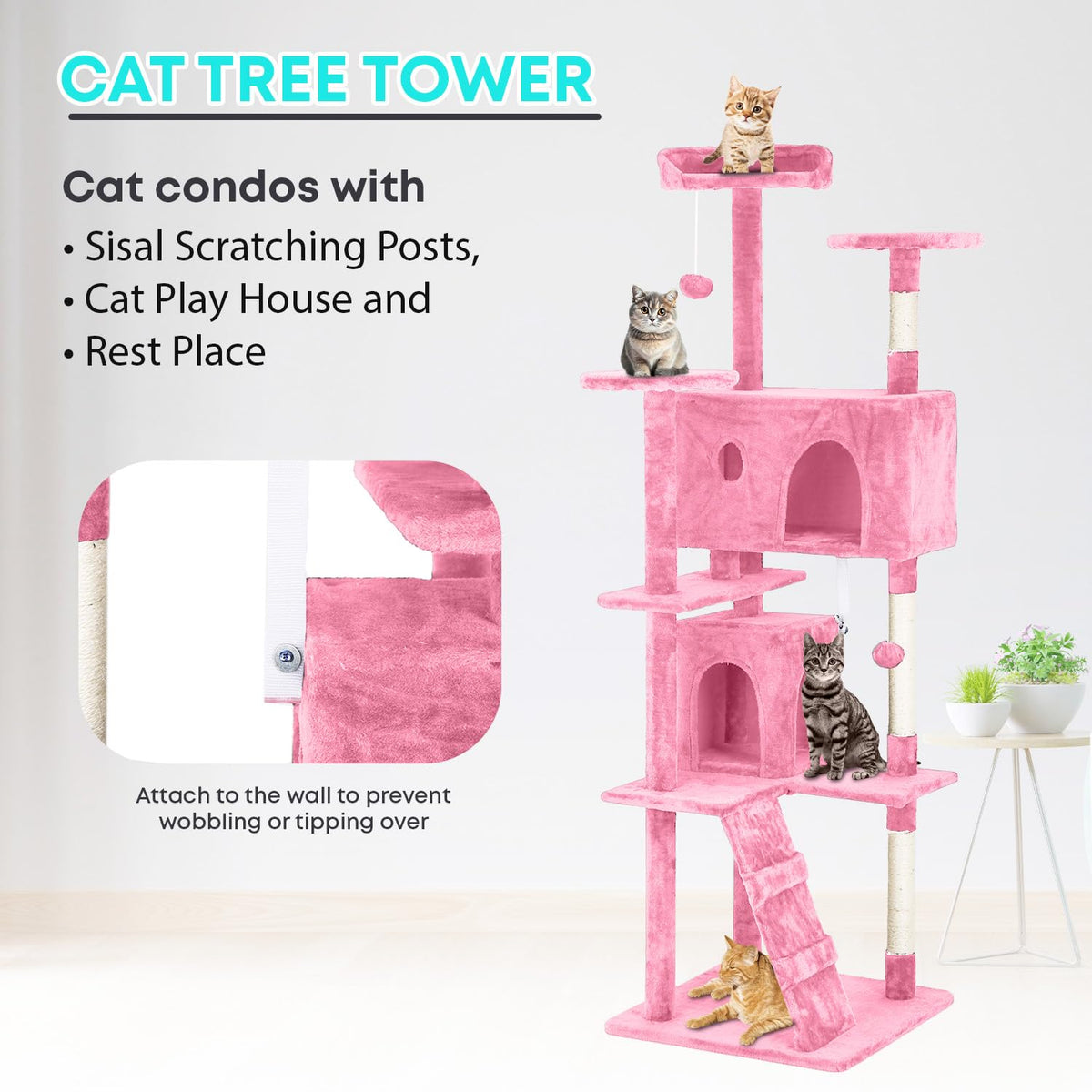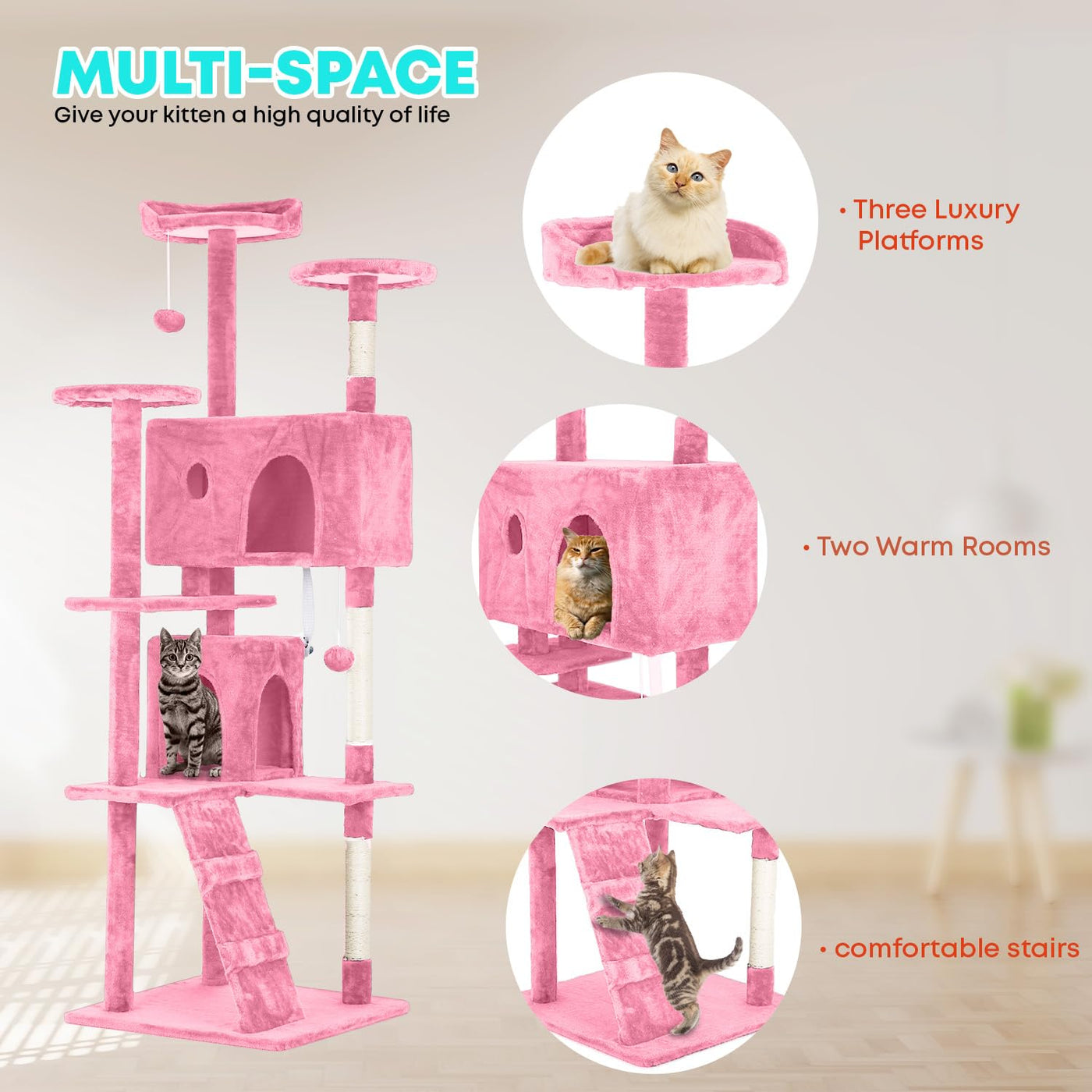 Fdw Cat Tree 70In Cat Tower Multi-Level Durable Cat Scratching Post & Cozy Fun Cat Jumping Platform Space Saving Cat Condo Pet Play House For Indoor Cats,Pink