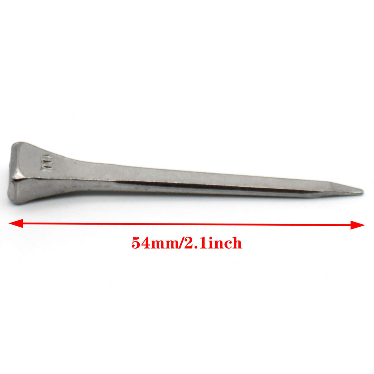 Q: What is the length of the FDXGYH Horseshoe Nails?A: Each FDXGYH Horseshoe Nail measures E6 in size, with a length of 54mm or approximately 2.1 inches.