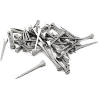 Name: Horseshoe NailMaterial: cold-rolled stainless steel rust and corrosion resistance high hardnessSize:E6 length 54mm/2.1inchFunction: Nails can be used alone to fix lead or glassPackage content: 50pcs horseshoe nails