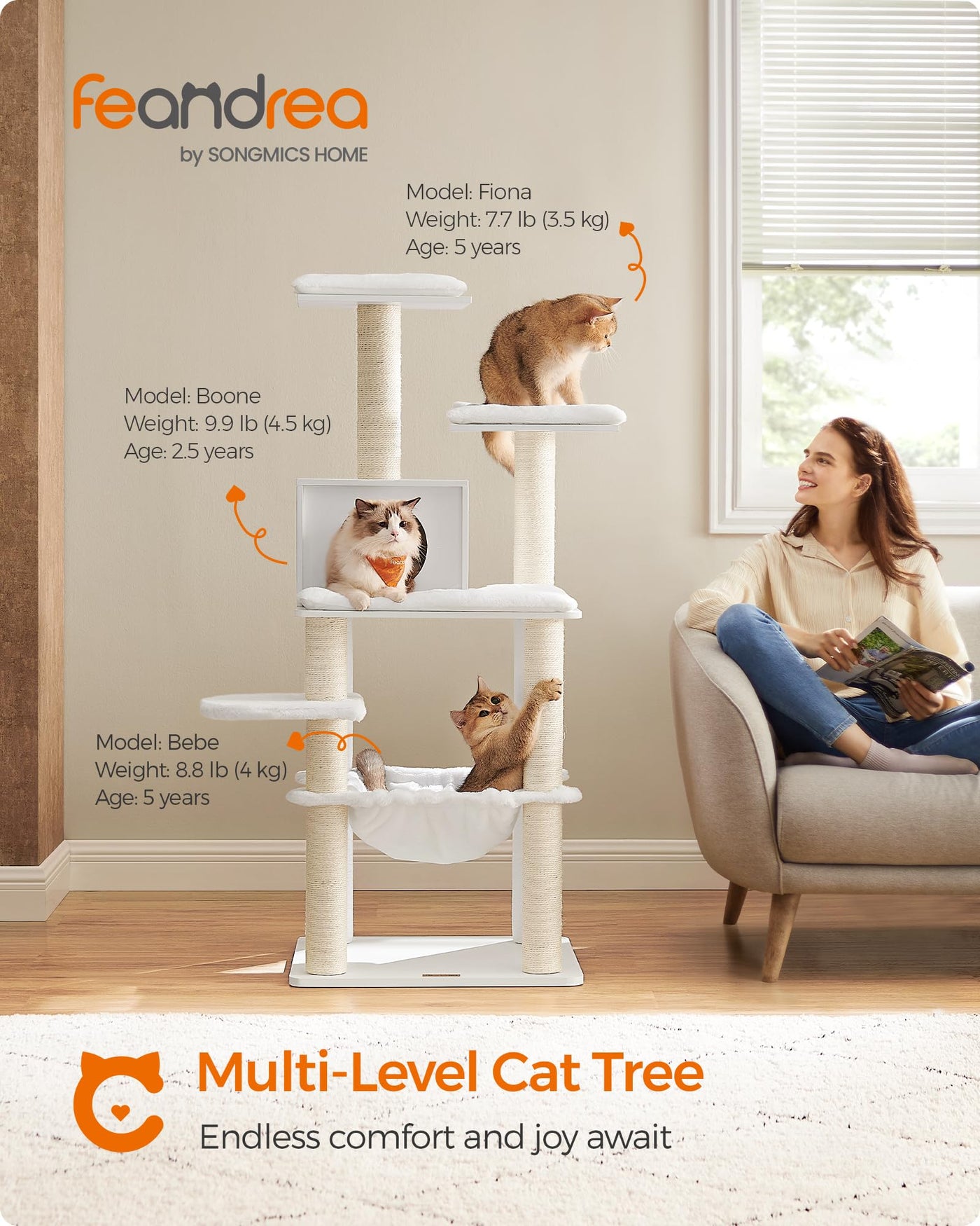 Feandrea Cat Tree, 54.3-Inch Modern Cat Tower For Indoor Cats, Multi-Level Cat Condo, Ultra-Soft Plush, Scratching Posts, Hammoc