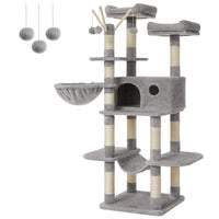 Feandrea Cat Tree, Large Cat Tower, 64.6 Inches, Cat Activity Center With Hammock, Basket, Removable Fur Ball Sticks, Cat Condo,
