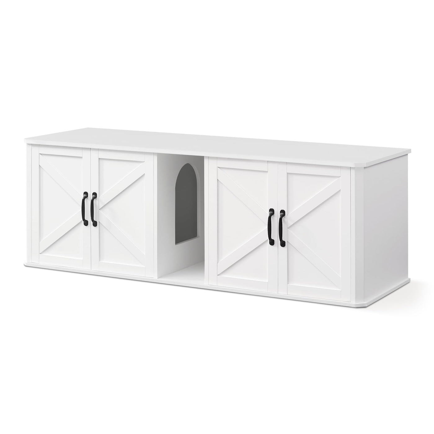 Why Choose This Feandrea Litter Box Furniture? - Double Cabinets For 2 Cats: Each Cat Has Its Own Private Space To Do Its Business. - Adds A Touch Of Style: With An Elegant Cloud White Finish, This Covered Litter Box Elevates Your Home. - Spacious And Versatile: 2 Roomy Cabinets For 2 Litter Boxes, Cat Beds Or Storage Needs. - Sturdy And Durable: Made Of Particleboard, It'S Wear- And Scratch-Resistant, Strong, And Durable. - Less Mess And Tracking: The Enclosed Design Conceals The Mess And The Front Entry Reduces Litter Tracking. - Double Magnetic Locks: Keep The Doors Closed Tightly So They Won'T Awkwardly Open By Themselves. - Easy To Clean: 2 Doors Allow Easy Access To The Litter Box For Litter Scooping. Specifications: - Color: Cloud White - Material: Particleboard - Product Size: 59''L X 19''W X 19.5''H (145.6 X 48.5 X 50 Cm) - Product Weight: 59.5 Lb (27 Kg) - Max. Static Load Capacity Of The Top: 352 Lb (160 Kg) Package Contents: - 1 X Litter Box Enclosure - 1 X Accessory Kit - 1 X Instructions Feandrea Notes: - Please Do Not Overload This Litter Box Enclosure. - Check The Internal Dimensions Of The Litter Box Enclosure To Ensure It Fits Your Litter Box.