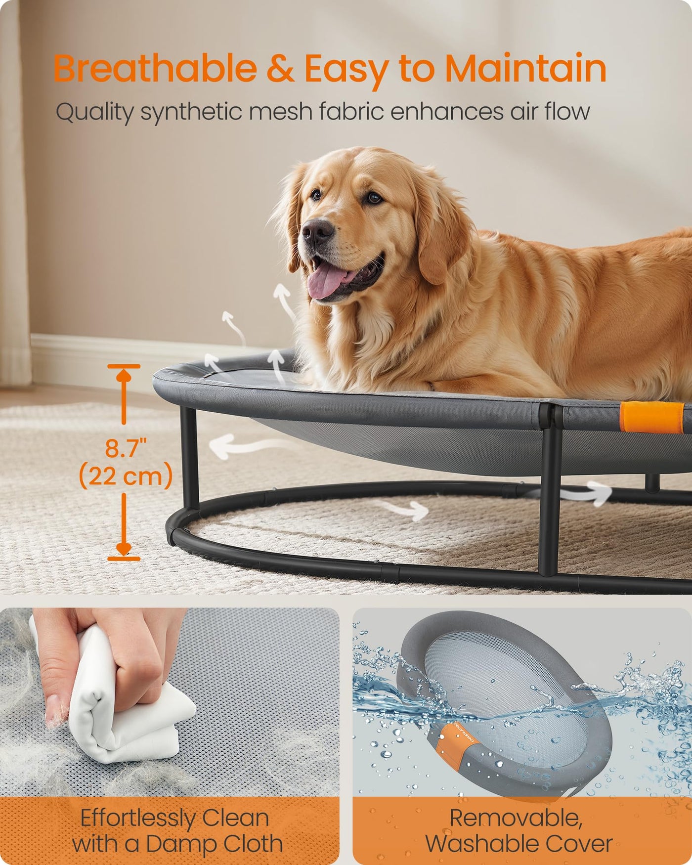 Feandrea Pet Bed, Cat Hammock, Elevated Cat Bed for Multiple Cats, with Removable Washable Mesh, for Pets up to 120 lb, Oval, Gr