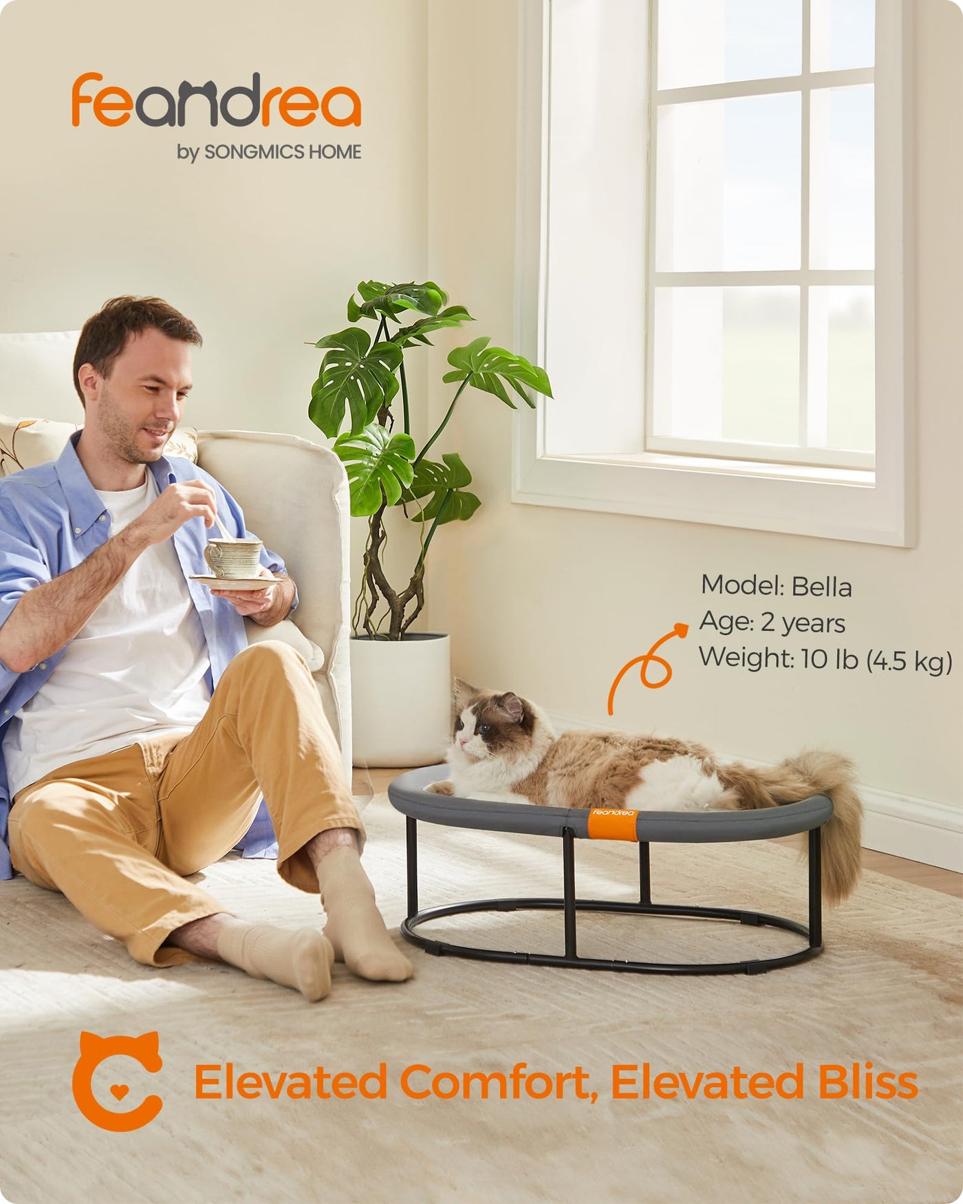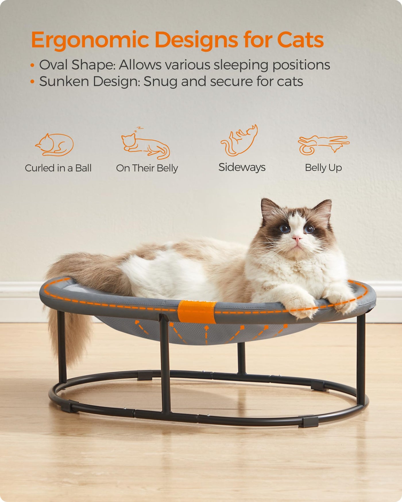 Feandrea Pet Bed, Cat Hammock, Elevated Cat Bed For Multiple Cats, With Removable Washable Mesh, For Pets Up To 28 Lb, Oval, Gra