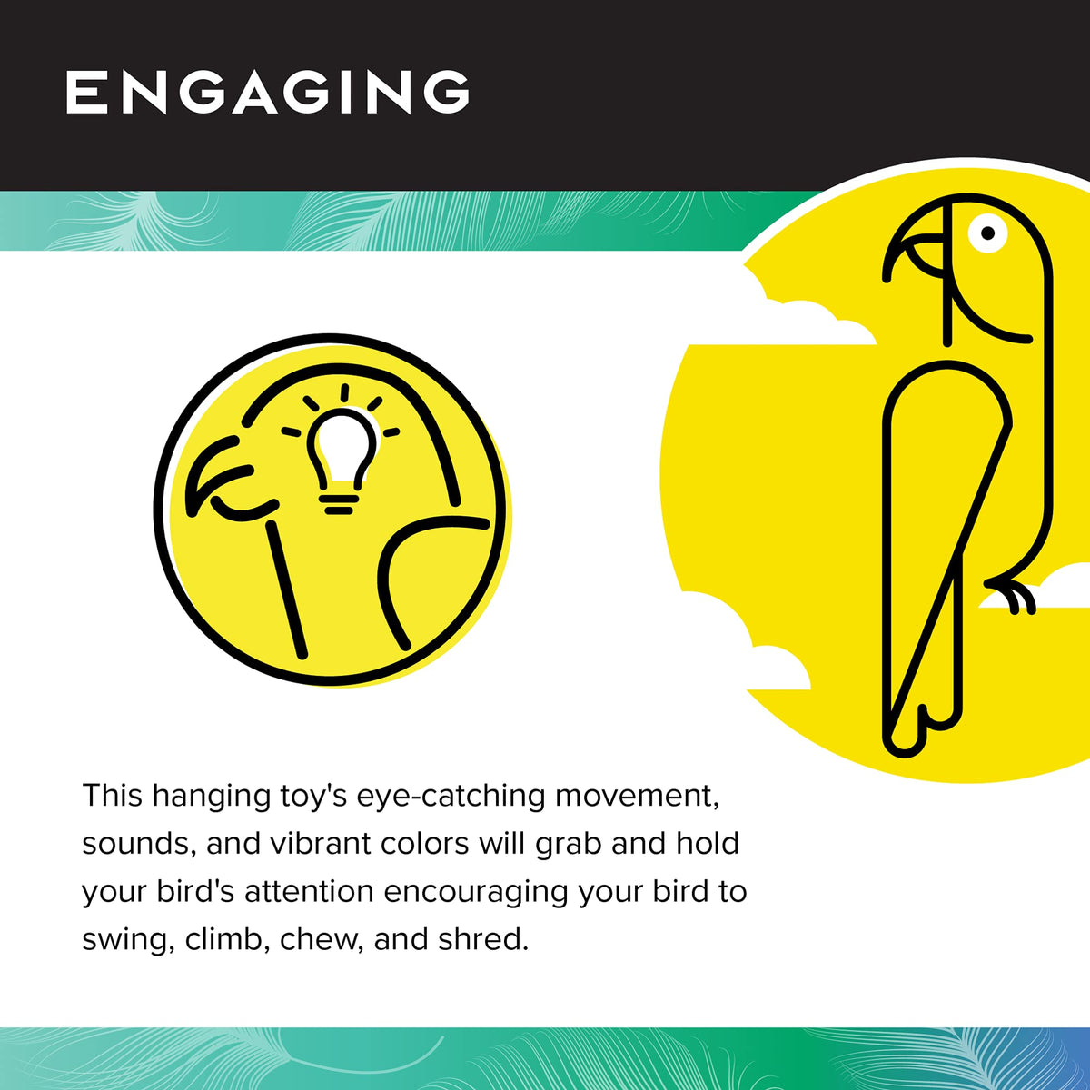 STIMULATING: Ideal for boredom busting, wooden pieces of these large bird toys are great for biting, chewing, and conditioning a beak while stimulating both beak and foot activity | ENGAGING AND INTERACTIVE: Bright, multi-colored wooden blocks on this hanging toy will keep your bird's attention for hours! The eye-catching movement, sounds, and vibrant colors of these parrot toys for large birds will foster interactive play and encourage your bird to swing, climb, chew, and shred | SIZED FOR YOUR BIRD: Designed specifically for medium to large birds, the Knots N Blocks toy measures 14.5 inches long and work great as Cockatoo toys, Macaw toys, toys for Amazons, Congo Greys, Eclectuses and other large bird breeds | DURABLE: Created from pet-safe materials such as entirely cotton rope, wood, and natural sisal rope, the materials used in these large parrot toys condition the beak while the fabric textures help stimulate both beak and foot activity | EASY INSTALLATION: The Knots N Blocks toy attaches easily to any cage with its quick link fastener, ensuring your bird can start playing as quickly as possible