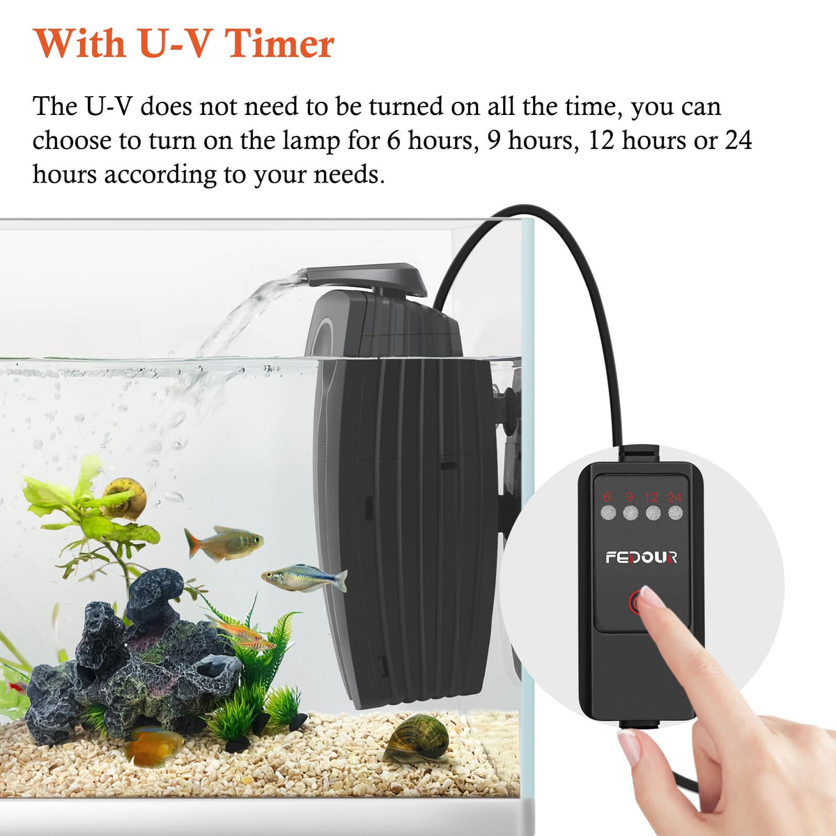 Fedour 165Gph Aquarium Filter U-V With Timer, 8W Adjustable Fish Tank Filter Pump, U-V Submersible Internal Filter For 10-50 Gallon Tank, With Biochemical Cotton, Activated Carbon Cotton