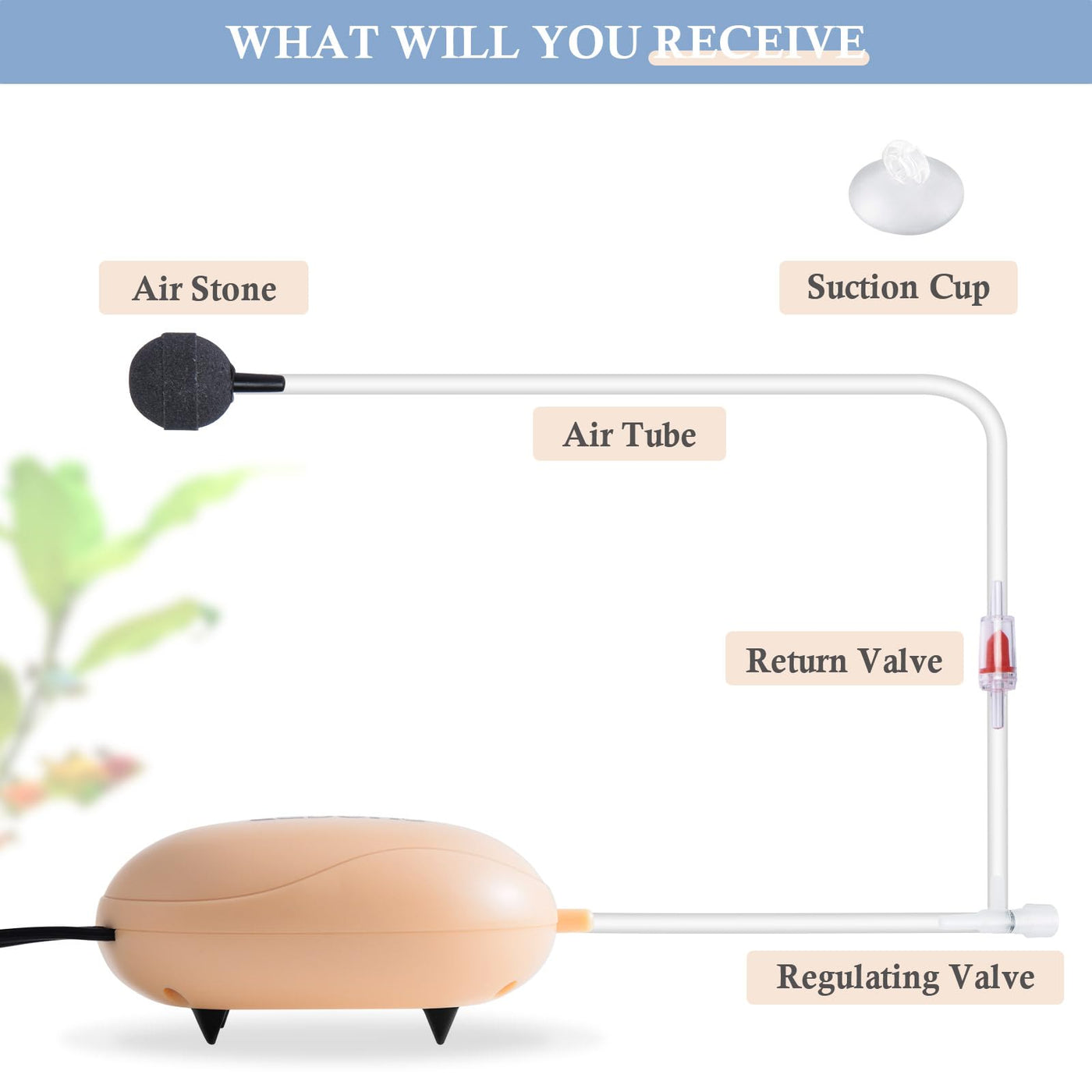 [Easy to Use] Come with everything you need including 5ft air tube check valve air stone air regulating valve to adjust the air volume suction cup for fixing the air tube very easy and safe to use.