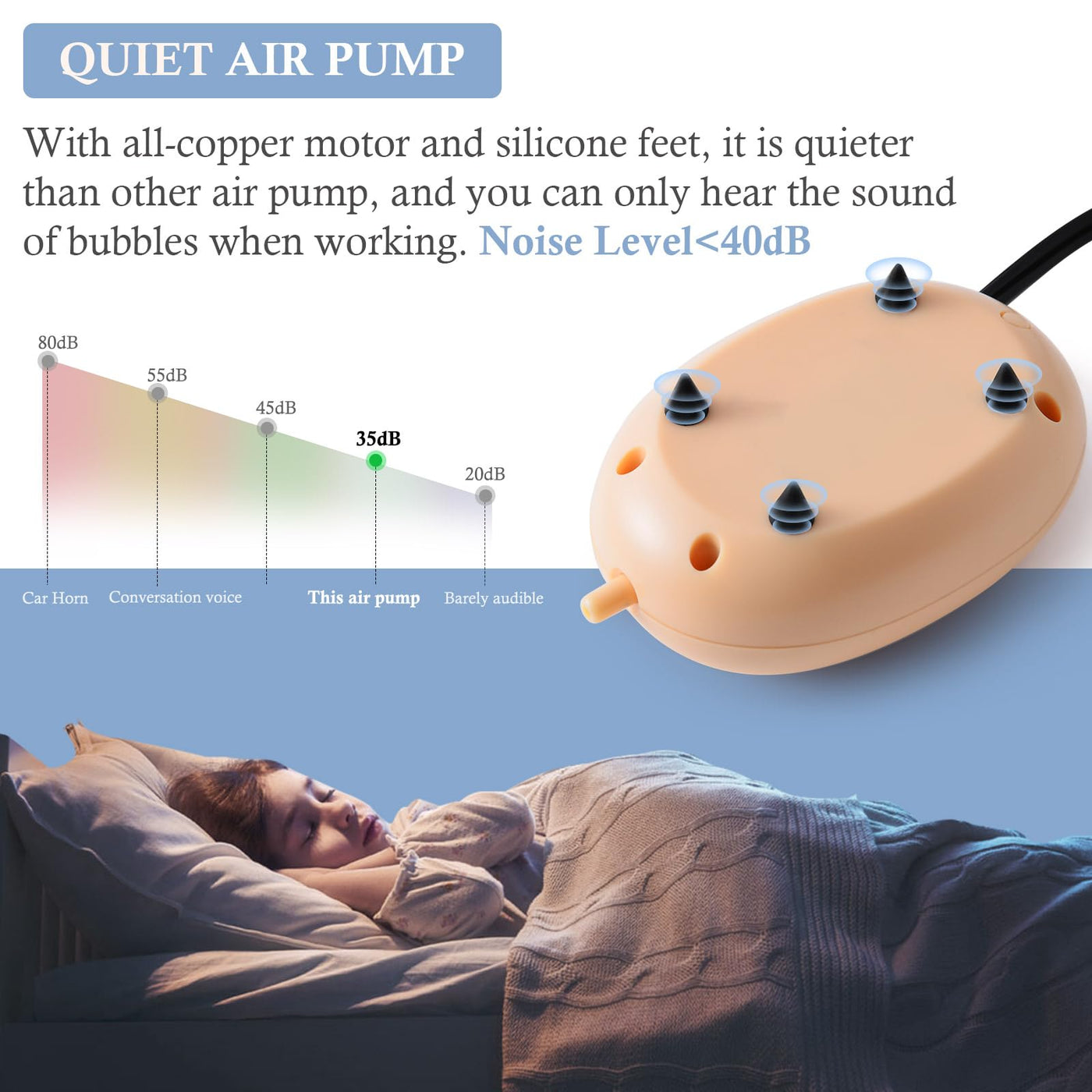 [Quiet Air Aerator] 4 upgraded cone rubber feet under the oxygen pump can greatly absorb vibrations for maximum noise reduction very quiet in use will not disturb you and your lovely aquatic pets.