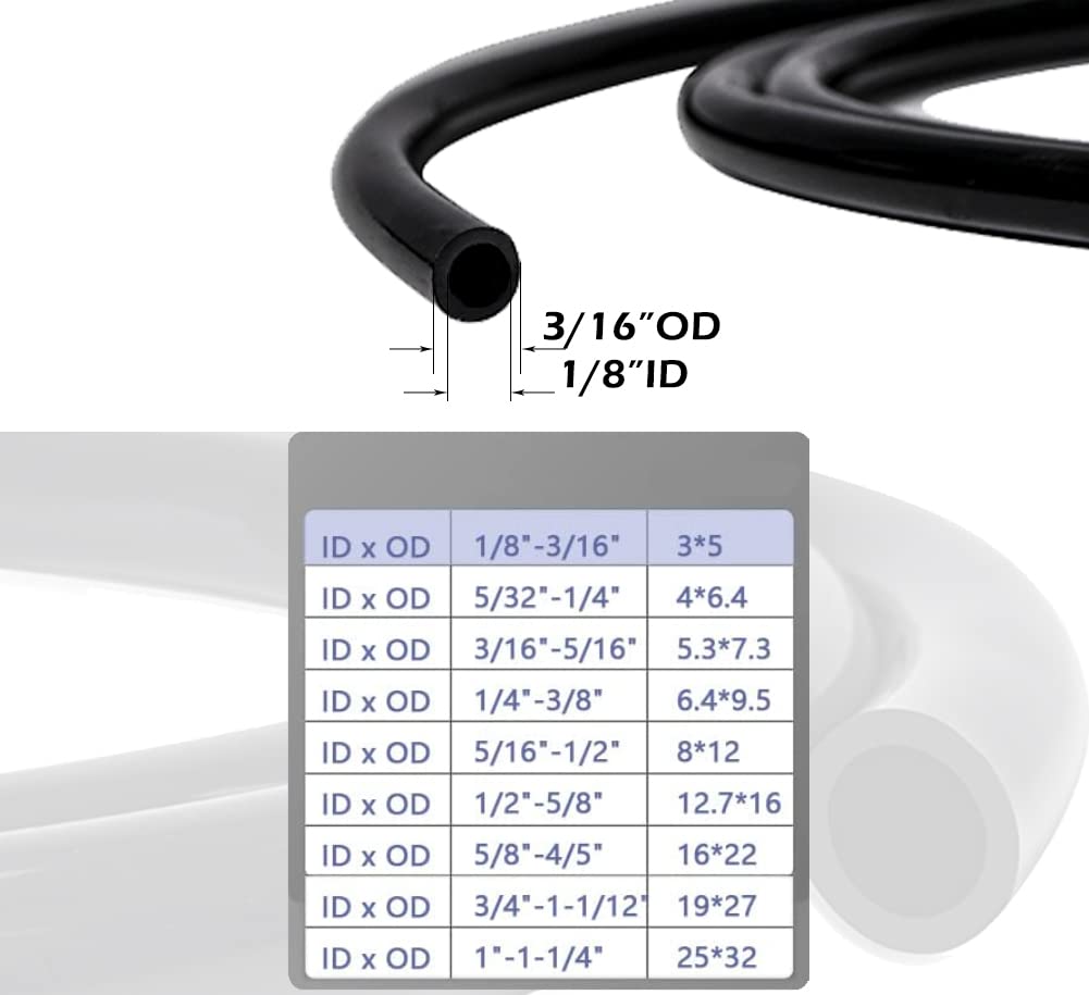 Feelers Black PVC Vinyl Tubing 1/8 ID x 3/16 OD Water Fish Tank Aquarium Air Line Lightweight Hose BPA Free, 3.28 Feet