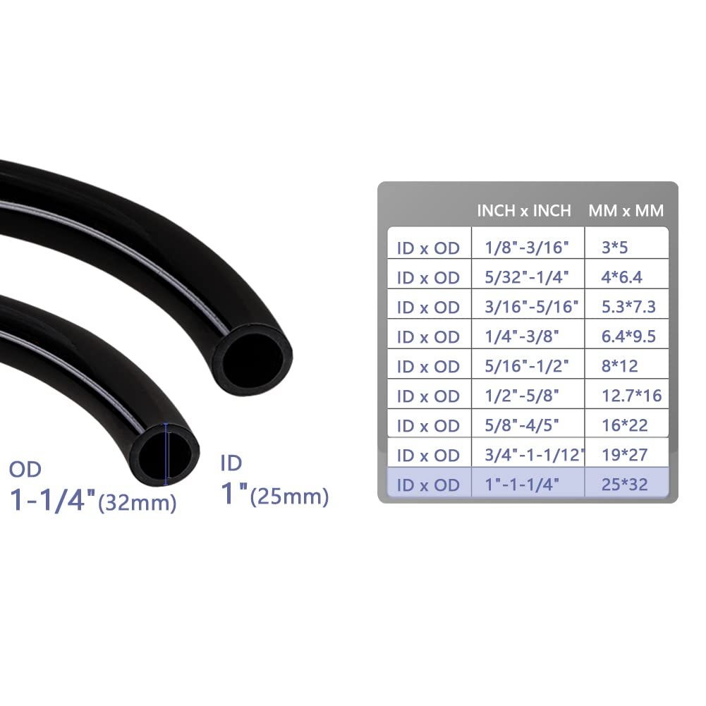 Feelers Black PVC Vinyl Tubing 1 ID x 1-1/4 OD Water Fish Tank Aquarium Air Line Lightweight Hose BPA Free, 16.4 Feet