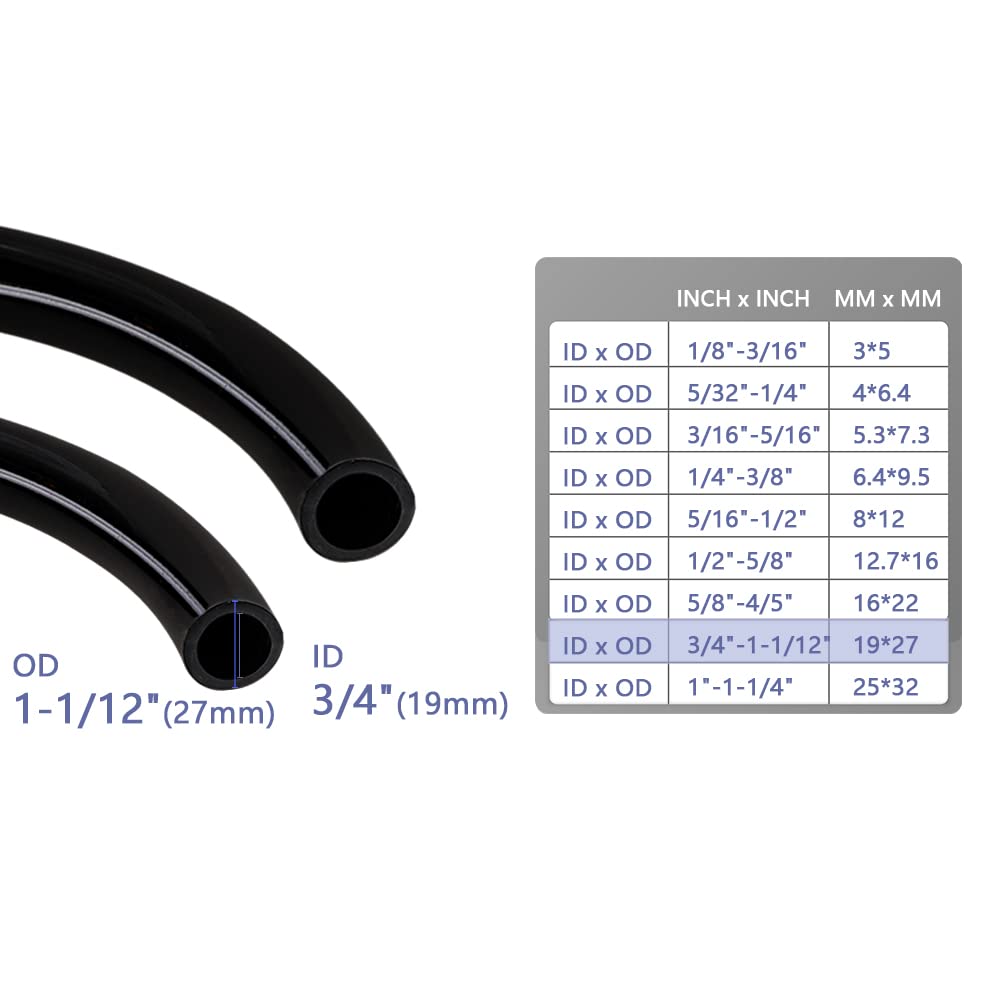Feelers Black PVC Vinyl Tubing 3/4 ID x 1-1/12 OD Water Fish Tank Aquarium Air Line Lightweight Hose BPA Free, 16.4. Feet