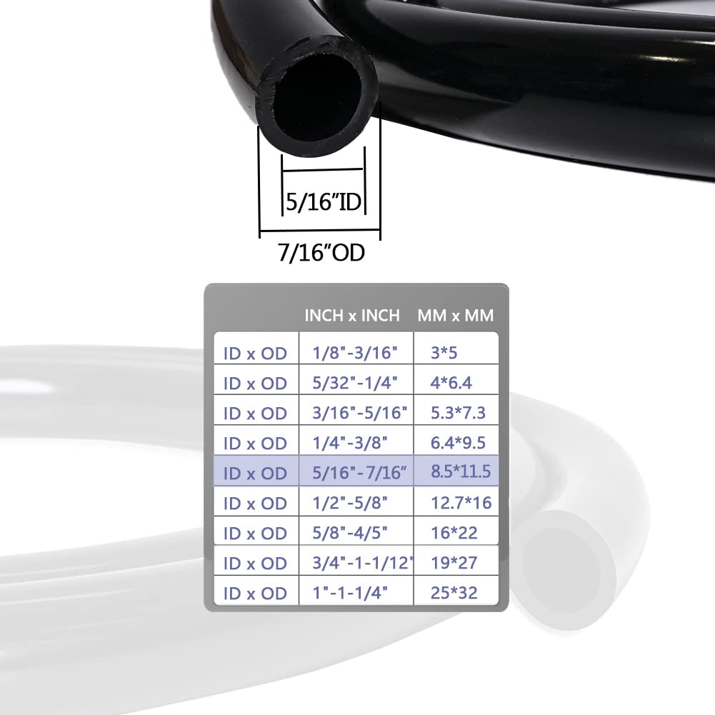 Feelers Black PVC Vinyl Tubing 5/16'' ID x 7/16'' OD Water Fish Tank Aquarium Air Line Lightweight Hose BPA Free, 3.28 Feet