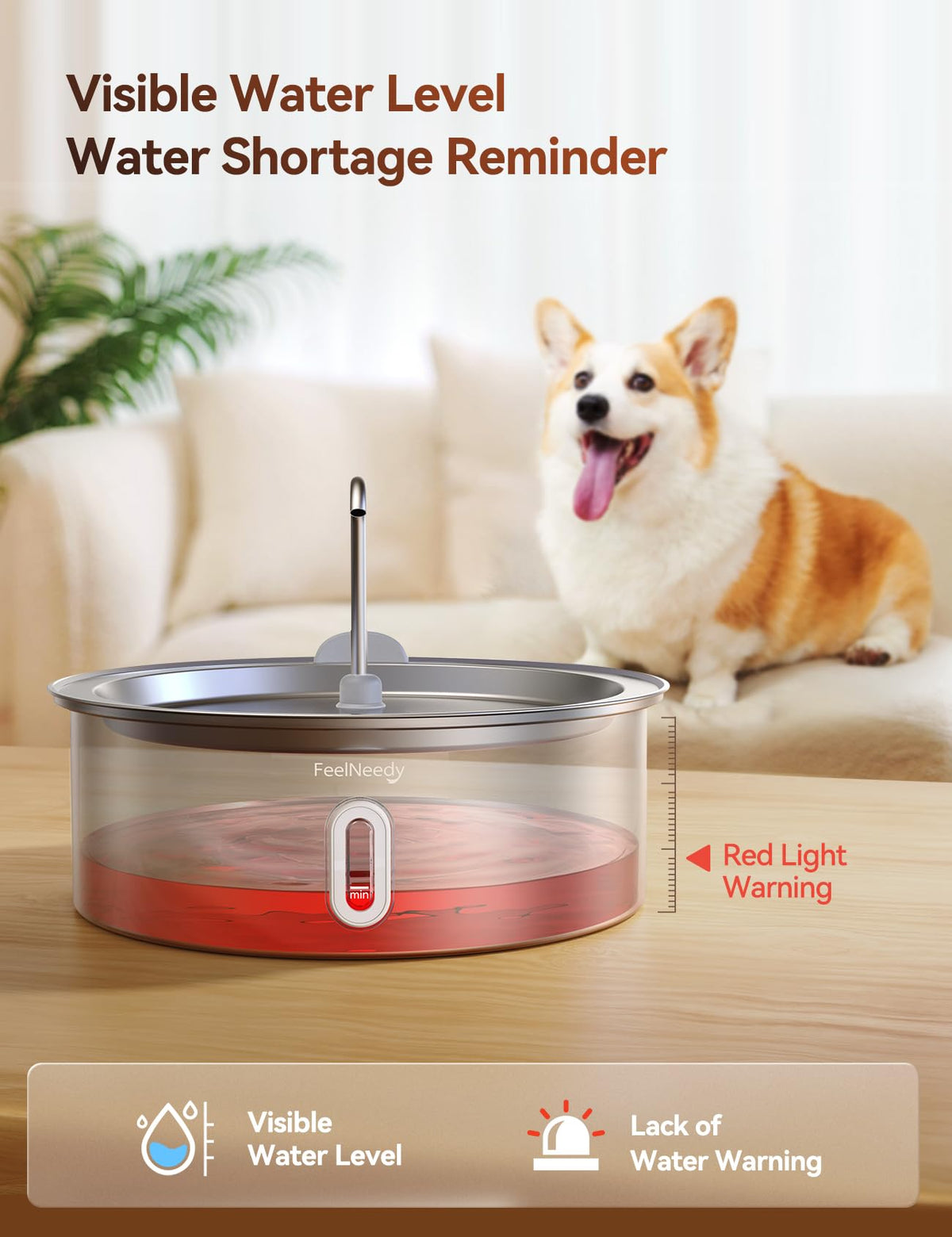 Feelneedy 7L/1.8Gal Stainless Steel Dog Water Fountain, For Large Dogs, Cats, Multi-Pets, Ultra Quiet With 5-Layers Filtration,
