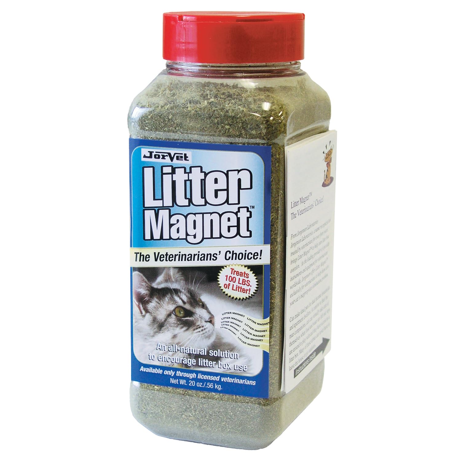 An all-natural solution to encourage litter box use. Litter Magnet will assist you in treating the most troubling behavioral problem a cat can have. 'Inappropriate Elimination' i.e. non use of litter box. Often this problem is not medical and cannot be treated with medication. Treatment becomes a consultation with the pet owner representing time spent for which it is often difficult to be compensated. Litter Magnet and its supporting brochure will give you a product that can be prescribed with a tested solution that will help your customer get their cat back to the box An all-natural herbal product Litter Magnet uses its rich earthy fragrance to attract the cat to its litter box. Once the cat goes to the box. With Litter Magnet you can address a behavior problem and be able to prescribe a solution. You have also made a pet owner happy and possibly kept the cat out of a shelter or from being abandoned. Litter Magnet (Jorvet Product No.J1001) 20 oz. bottle with a shake and pour lid Treats 100 pounds or more of clumping/scoopable clay litter A client education brochure is provided with each bottle 6 bottles per case.
