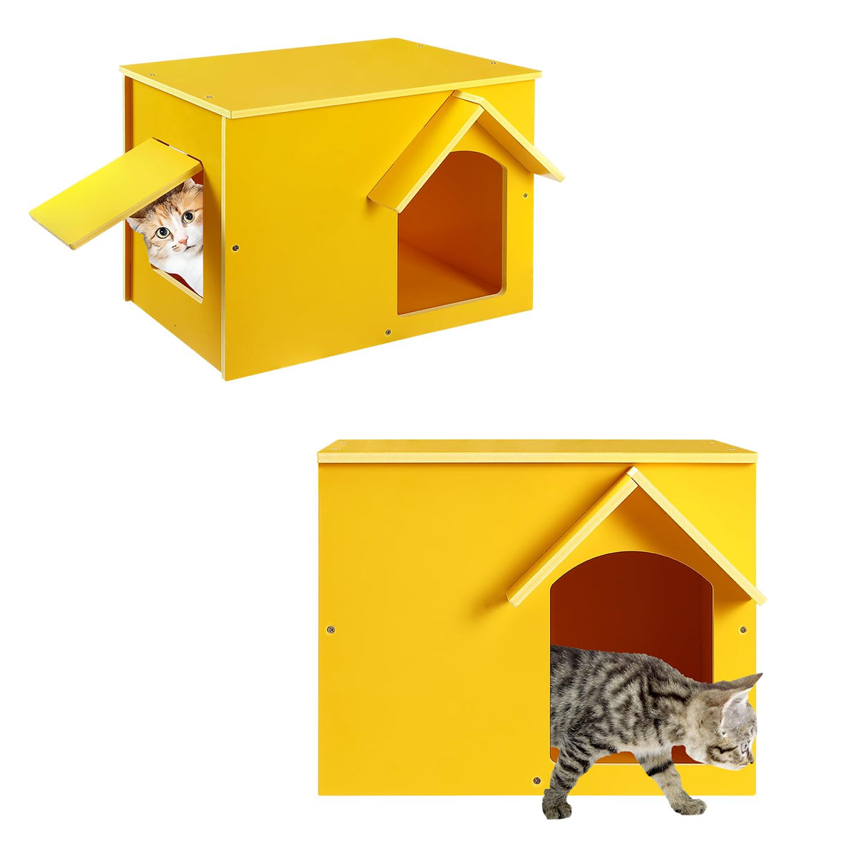 Felmis Outdoor Cat House, Yellow Feral Cat Shelter, Waterproof Stray Cat Outdoor Indoor Pet House For Small Animal With Escape D