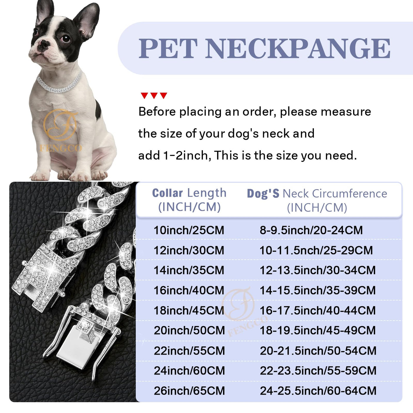 Fengco Silver Dog Chain Collar Diamond Cuban Link 13Mm Wide Dog Necklace Metal Cat Chain Pet Crystal Collar Jewelry Accessories