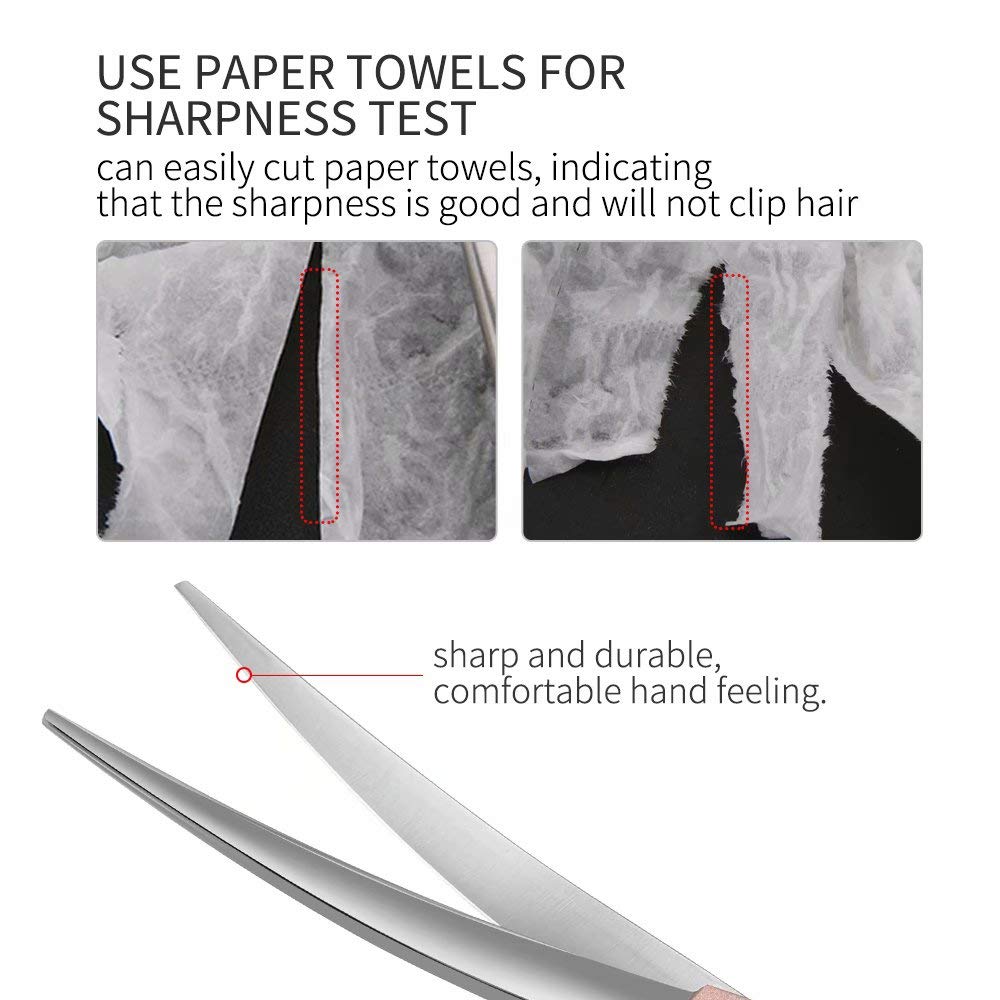 Fenice Peak Professional Curved Dog Grooming Scissors Rose Gold 440C Stainless Steel Pet Cutting Shears Safety Trimming Shearing for Dogs Cats -Item Type: : Pet Curved Scissors -Material: 100% 440C Japen Stainless Steel -Size:7, 7.5, 8inch -Head Hardless:60-62hrc -Including:1*Scissors,1*Comb,1*Bag -Warm Tips: -For safety, avoid children with scissors -Can not be used as ordinary scissors, dont use them to cut metal objects -These grooming tools for dogs and cats are made from high-quality stainless steel blades that are able to resist tarnish and rust. Maintenance of our dog grooming tools is simple; just wipe with our cloth and store it in a clean dry place.