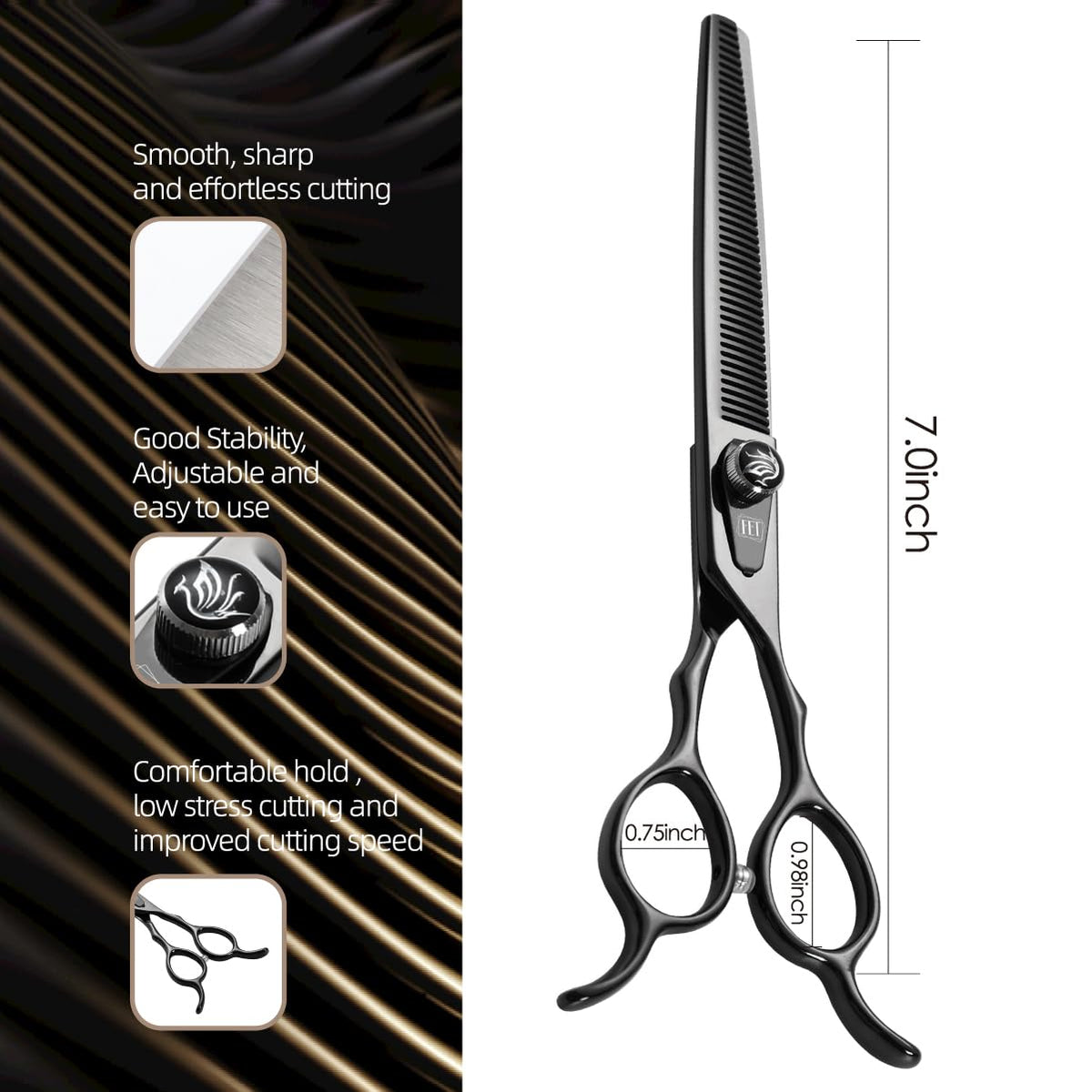 Fenice Totem Dog Grooming Scissors: 7.5 Inch Bright Black Professional Pet Curved Chunker Shears Made Of Japanese 440C Advanced