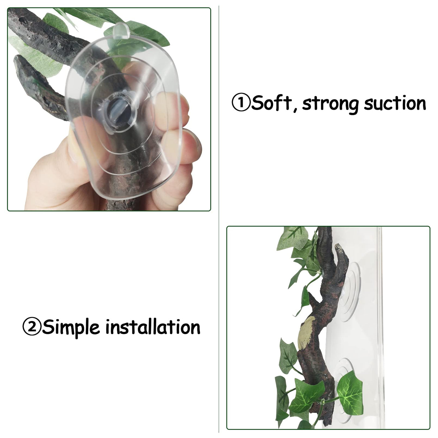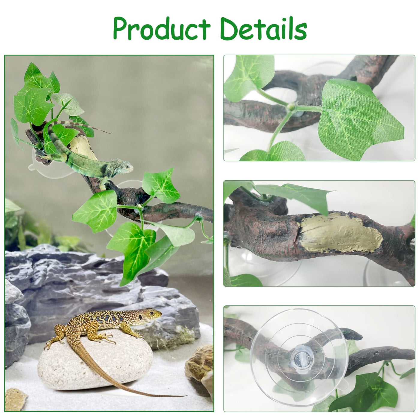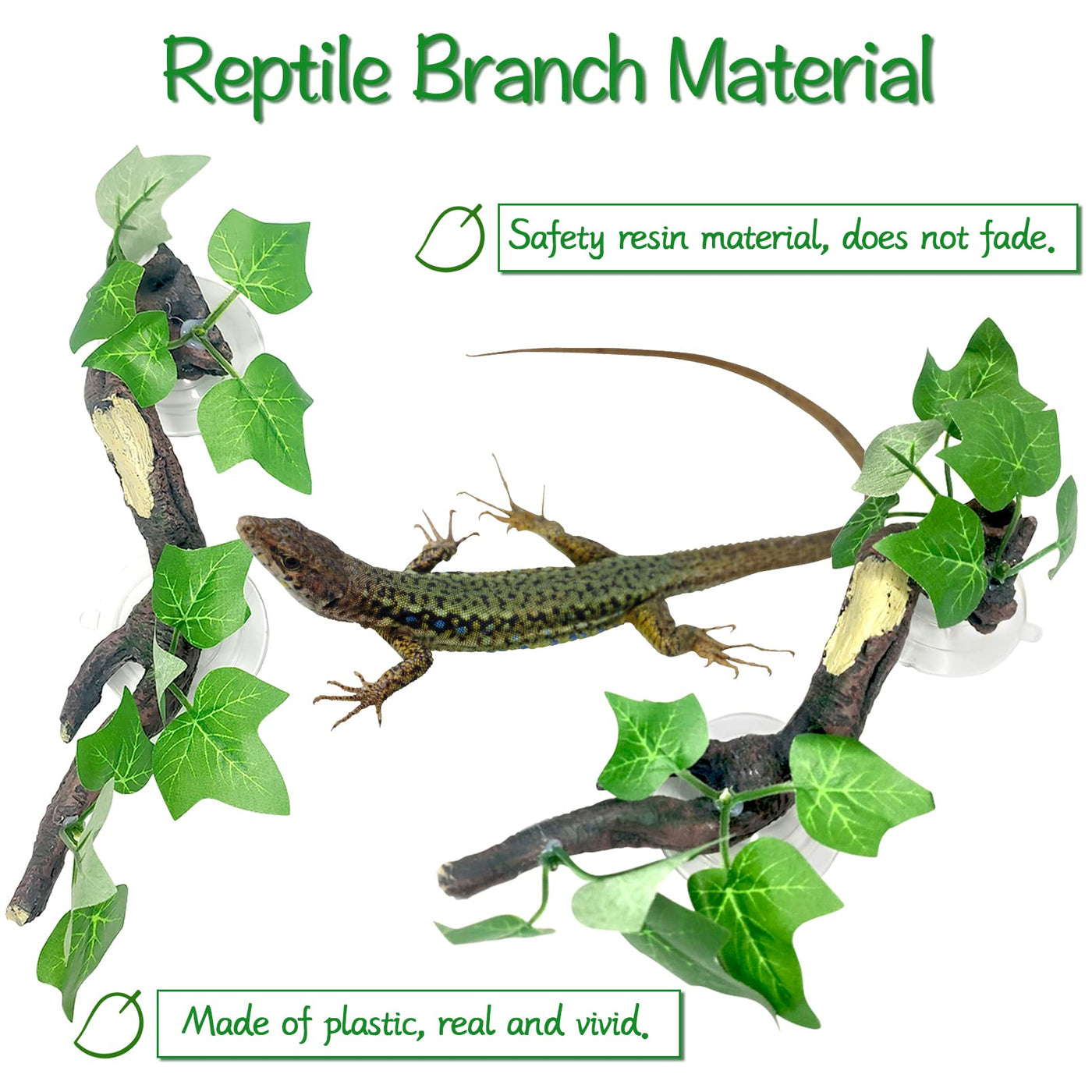 Fhiny 2 PCS Reptile Corner Branch, Resin Climb Tree Branch Decor with Leaves Tank Accessories Terrarium Plant Ornament with Suction Cup for Snake Lizard Bearded Dragons Gecko Climbing