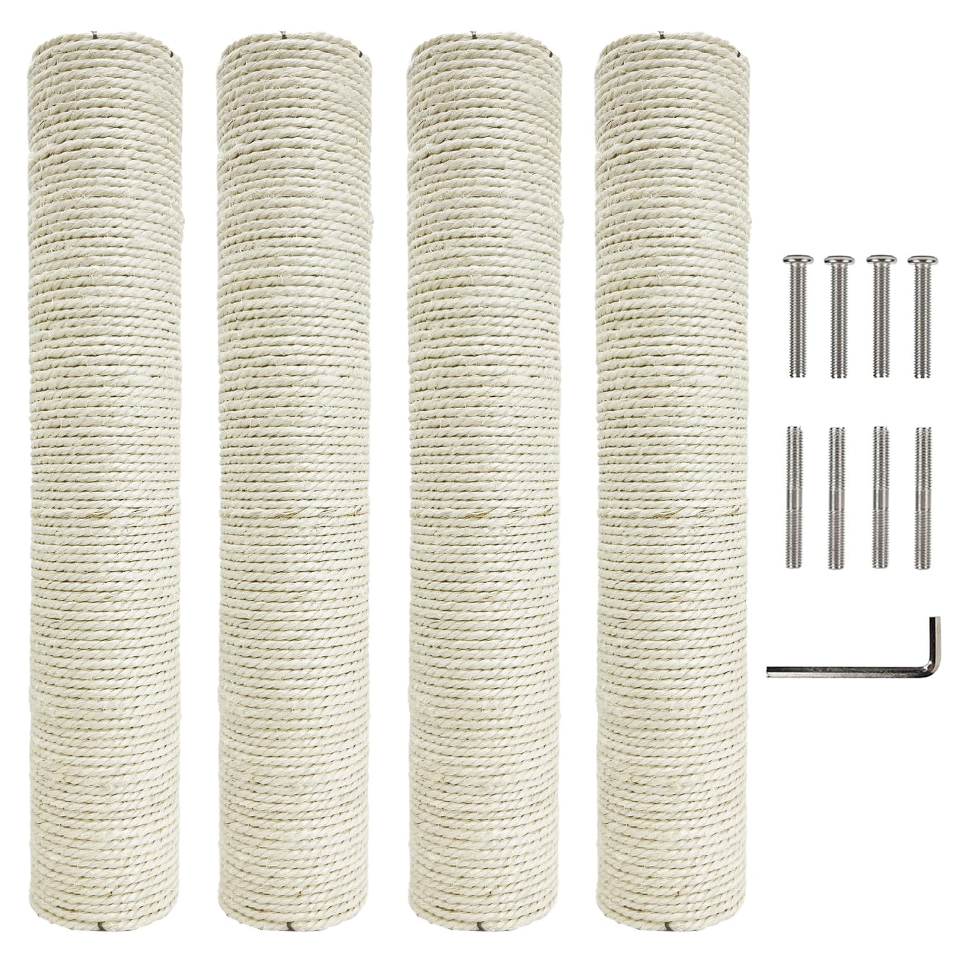 Fhiny 4Pcs Cat Scratching Post Replacement 15' Natural Sisal Spare Extension Scratch Post For Cats Tree Diy Craft Refill Pole P