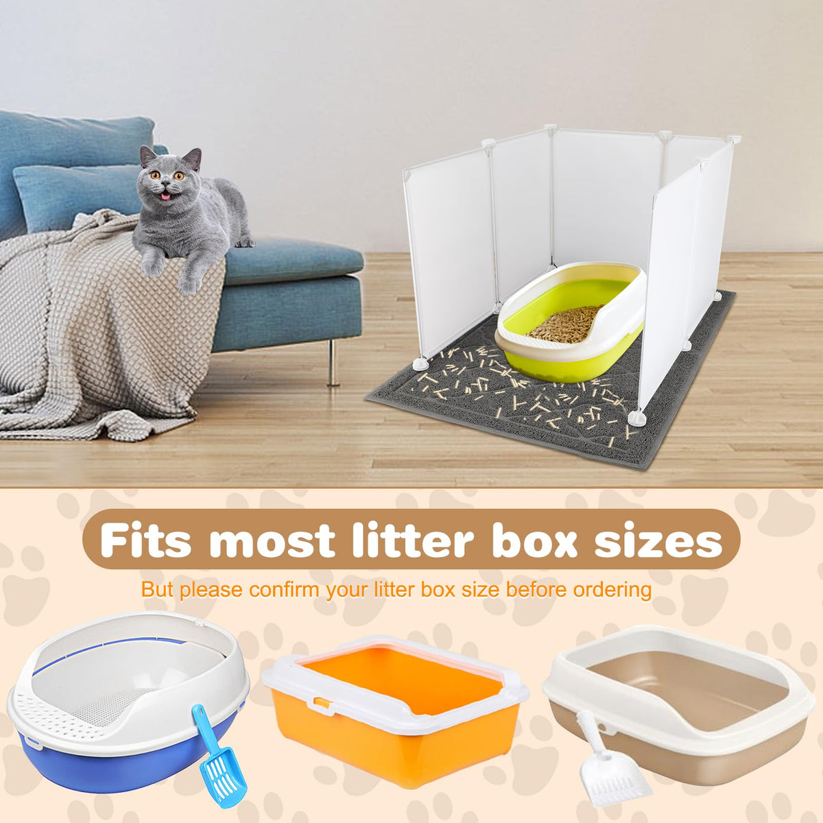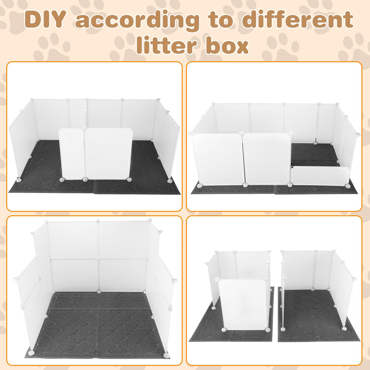 ?Why Do You Need A Cat Litter Pan Pee Shields??Cats Are So Lovable, But Are You Still Bothered By Cat Urine And Litter Particles Spilled On The Floor? Even Though A Litter Box Has High Sides, Some Cats Still Like To Stand On The Edge To Pee, Which Can Easily Stain Walls And Floors. With This Cat Litter Box Enclosure, You Are No Need To Worry About Litter Everywhere! ?Keep Walls & Floors Clean Tigy?By Raising The Side Height To Prevent Litter And Urine From Spraying Out, And The Litter Trapping Mat On The Bottom Can Effectively Recycle Waste And Absorb Urine. Perfect For Cats Who Pee Or Spray Over Litter Box Edges Or Dig Up Litter Vigorously!Relieving You Of The Burden Of Cleaning The Floor And Wall Hygiene. ?Wide Application?Suitable For A Variety Of Straight Edge, Curved Edge, Sharp Open Corners Open Litter Box/Low Sided Litter Pan. Widely Applied In Home, Pet Shop, Pet House, Living Room, Toilet, Bathroom, Balcony, Etc. But Also On The Edges Of Stairs, Doors, Corners And Other Areas Where Cats Might Get Dirty. ?Easy To Assemble & Diy?You Can Freely Matched To Diy Assembled The Splash Guard Shape And Size Depending On The Size Of Your Cat'S Litter Tray. During Assembly Process, Please Make Sure That The Abs Multi-Angle Connector Has Been Fully Used To Ensure That All Panels Are Fully Inserted Into The Connector Totally. Otherwise, The Plastic Sheets Will Fall Apart Easily. ?Easy To Clean?Vacuum Or Shake Off Litter And Rinse With Soapy Water. You Can Scrub The Panel With A Damp Cloth Or Rinse It With Cold Water. ?Multifunctional Litter Box Mat?This Elegant And Durable Mat Can Scrape Dirt Off Shoes, So It Can Also Be Used As An Insole, Welcome Mat, Doormat, And Pet Feeding Mat. The Anti-Slip And Waterproof Feature Can Be Used As A Floor Mat For Bedrooms, Kitchens, Bathrooms, Living Rooms, Garages, Laundry Rooms, Offices Or Any Other High-Traffic Areas.