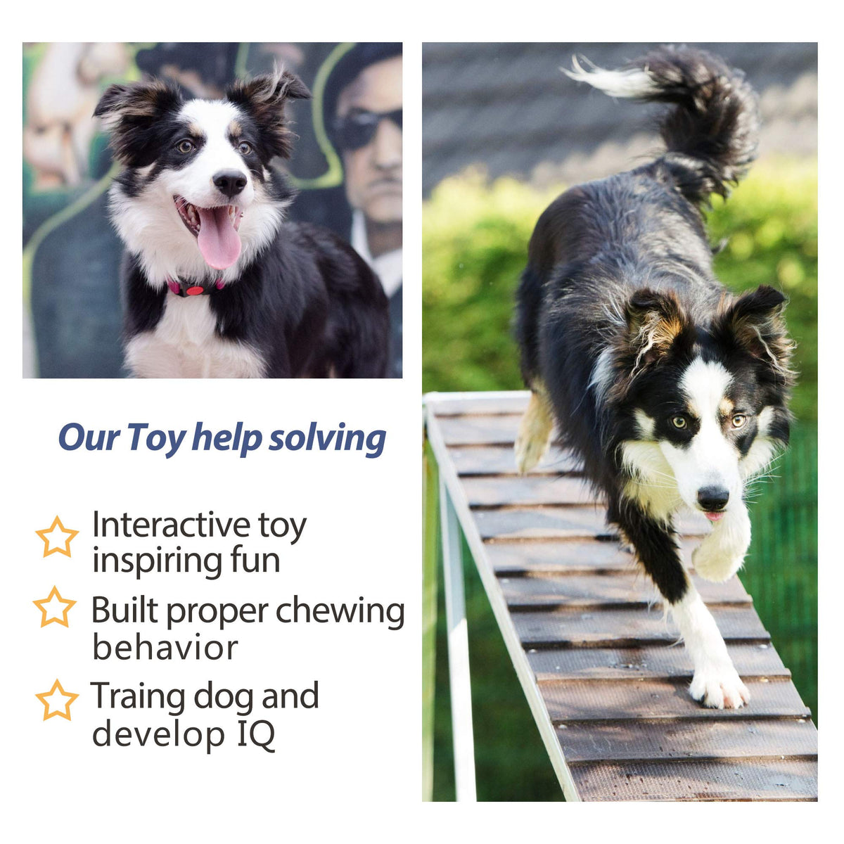 Safe material and tough chew toys for dogs Durable dog toy for Indoor and Outdoor Stuffing treats or food in it for hours of fun slowly eating and exercise bite force indoor. Play a toss game with your dog outdoors to increase interaction, and it can also train the dogs jumping, and reaction ability. Cleaning the teeth The dog toy has the function of cleaning teeth and has thorns everywhere to increase friction. This is a gentle and effective way to take care of all dogs and puppies.