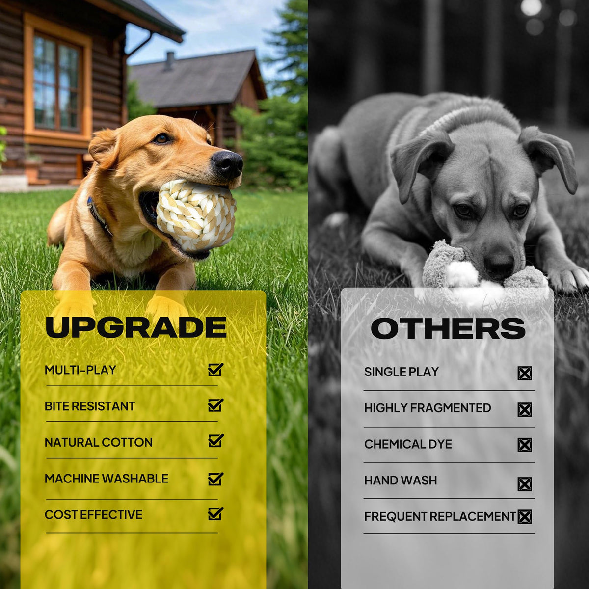 Fida Heavy Duty Dog Rope Toys For Aggressive Chewers 4Pcs Pack - Designed For Large Dogs And Power Chewers, This Natural Cotton Rope Toy Set Combines Safety, Durability, And Endless Fun To Satisfy Your Dogs Instincts To Tug, Fetch, And Explore-All While Giving Pet Owners Peace Of Mind. Why Choose Fida Rope Toys? 1. 100% Natural Cotton, 100% Safe Chemical-Free Design: Made With Undyed, Unbleached Cotton Fibers-No Dyes, Toxins, Or Harsh Chemicals. Safe Even If Your Dog Ingests Small Fibers During Play. Vet-Approved Material: Gentle On Gums Yet Tough Enough To Withstand Aggressive Chewing, Perfect For Teething Puppies Or Anxious Adult Dogs. 2. 4-In-1 Play Variety To Beat Boredom Rope Ball: Perfect For Fetch And Toss Games, Triggering Your Dogs Chasing Instincts. Ring: Ideal For Interactive Tug-Of-War To Build Muscle And Obedience. Knot: Multi-Layered Twists Challenge Even The Most Determined Chewers. Twist: Textured Design Provides Mental Stimulation And Reduces Separation Anxiety. 3. Industrial-Strength Durability For Large Breeds Reinforced Construction: Triple-Braided Cotton Ropes + Quadruple Knots Tested To Withstand 120 Lbs Of Force. Built For German Shepherds, Rottweilers, Pit Bulls, And Other Powerful Chewers. Tear-Resistant: Even If Strands Fray, The Core Structure Stays Intact To Prevent Choking Hazards. 4. Promote Health & Strengthen Bonds Anxiety Relief: Channels Destructive Energy Into Healthy Play, Reducing Barking, Digging, Or Furniture Destruction. Training Tool: Use Tug-Of-War To Reinforce Leadership Or Fetch To Improve Responsiveness. 5. Hassle-Free Customer Support If Your Heavy Chewer Damages A Toy, Contact Us For Assistance. We Guarantee A 24-Hour Response To Ensure Your Dogs Safety And Satisfaction. Product Details Material: 100% Natural Cotton (Undyed, Uncoated) Sizes: Ball (4 Diameter), Ring (10 Diameter), Knot (12 Long), Twist (14 Long) Dog Size: Medium (20-50 Lbs) To Large (50-120 Lbs) Includes: 4 Rope Toys (Ball + Ring + Knot + Twist) Perfect For Multi-Dog Homes: Assign Different Toys To Prevent Rivalry. Outdoor Adventures: Durable Enough For Beaches, Trails, Or Backyard Play. Solo Play: Keeps Dogs Busy For Hours When Left Alone. What Pet Parents Say My Pit Bull Finally Met His Match! The Knot Toy Keeps Him Focused For An Hour Straight! No More Worrying About Chemicals-The Natural Cotton Is A Game-Changer. Amazing Customer Service! They Replaced A Frayed Toy Within Days! Why Fida Outshines Competitors Safer: Unlike Dyed Ropes , Fida Uses Raw, Undyed Cotton. Stronger: 3-Ply Braiding Lasts 50% Longer Than Single-Layer Ropes Better Value: 4 Toys Vs. Competitors 1-2 Piece Sets Order Now & Redefine Playtime! Whether You Have A Shred-Happy German Shepherd Or A Hyperactive Husky, Fidas 4-Piece Rope Set Delivers Unbeatable Durability And Joy. Key Features At A Glance ? Natural & Non-Toxic ? 4 Shapes For Mental & Physical Stimulation ? Heavy-Duty For Dogs Up To 120 Lbs ? Reduces Destructive Behavior ? 24/7 Customer Support